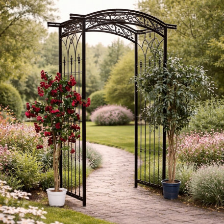 Scurta descriere: Pergola metalica pentru gradina 105x46x215 cm este un element decorativ elegant, ideal pentru alei, intrari sau delimitarea zonelor din curte. Designul sau arcuit ofera un aspect armonios si pune in valoare plantele cataratoare. Realizata din otel acoperit cu pulbere, pergola este rezistenta la intemperii si potrivita pentru utilizare indelungata in exterior. Constructia este stabila, iar montajul se realizeaza rapid si usor.