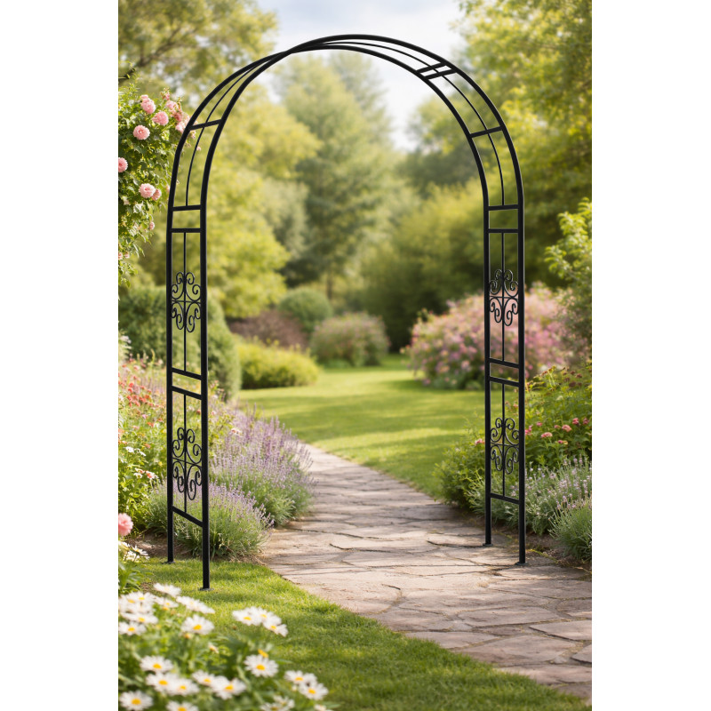 Scurta descriere: Pergola de gradina este o solutie eleganta pentru amenajarea spatiilor exterioare. Designul slim si minimalist o face potrivita pentru intrari, alei sau ca element decorativ in gradina. Constructia metalica rezistenta la intemperii asigura stabilitate si durabilitate, iar finisajul negru se integreaza usor in orice stil de amenajare. Este ideala pentru sustinerea plantelor cataratoare sau pentru delimitarea discreta a unui spatiu verde.