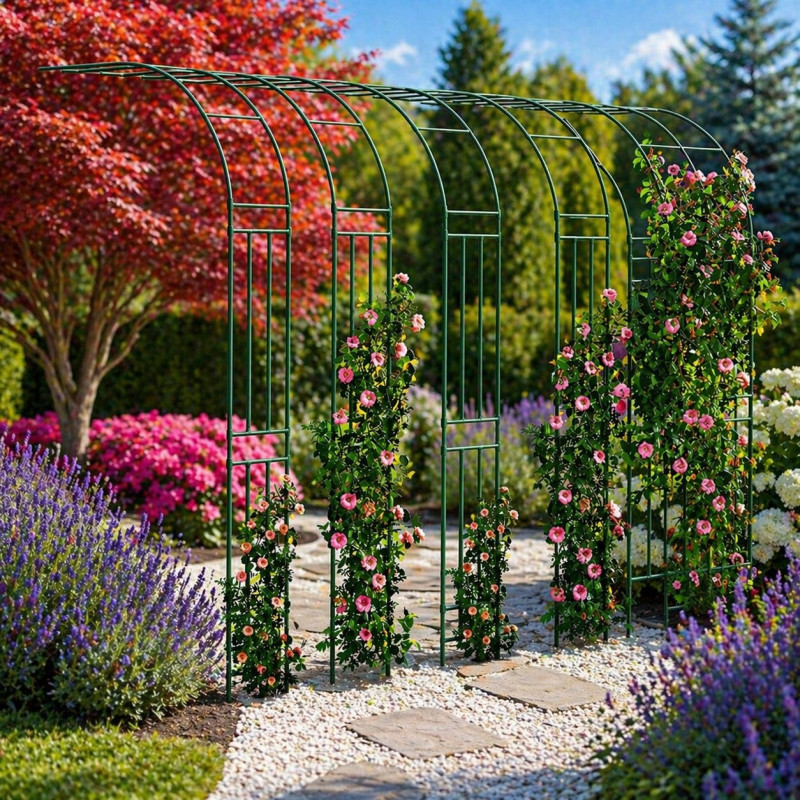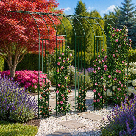 Scurta descriere Pergola de gradina tip arc, ideala pentru sustinerea plantelor cataratoare si decorarea spatiilor exterioare. Constructia metalica solida ofera stabilitate, iar stratul protector din PE asigura rezistenta la intemperii. Poate fi folosita ca arc decorativ pentru intrare sau pentru delimitarea zonelor din gradina.
