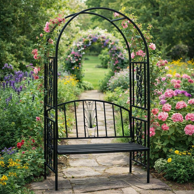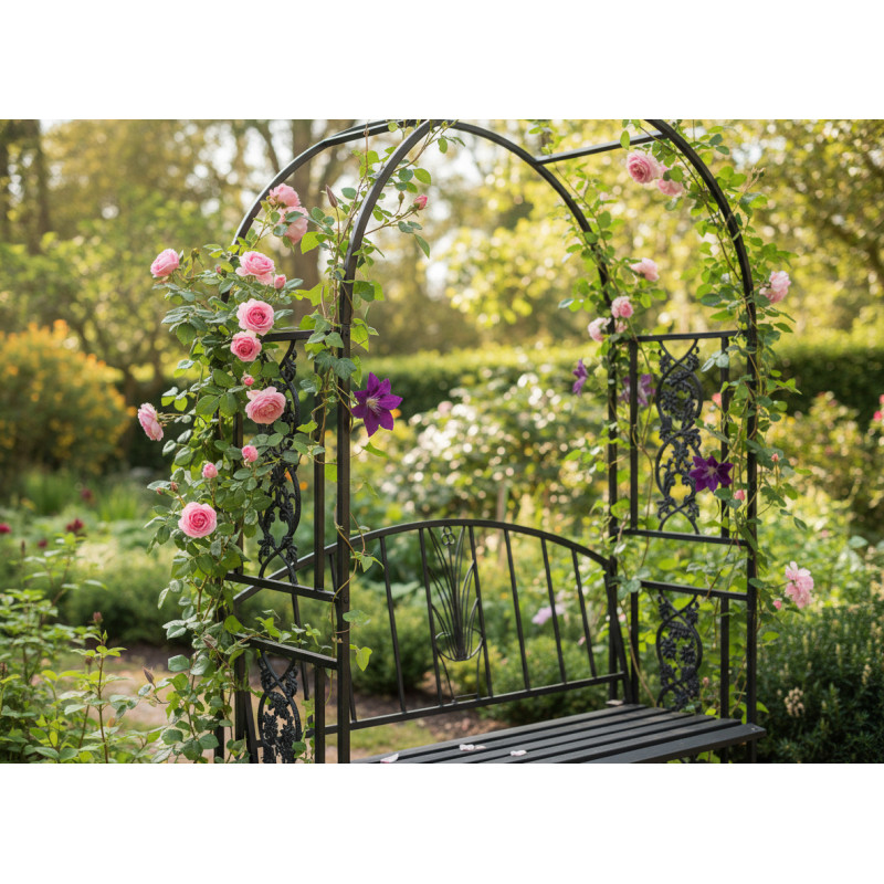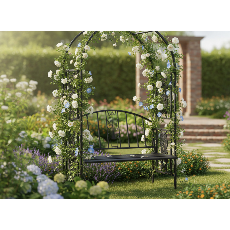 Scurta descriere Transforma gradina intr-un colt relaxant si elegant cu aceasta pergola cu banca integrata. Ideala pentru sustinerea plantelor cataratoare si pentru momente de odihna, imbina perfect functionalitatea cu designul decorativ. Structura metalica rezistenta asigura stabilitate si utilizare indelungata in exterior.