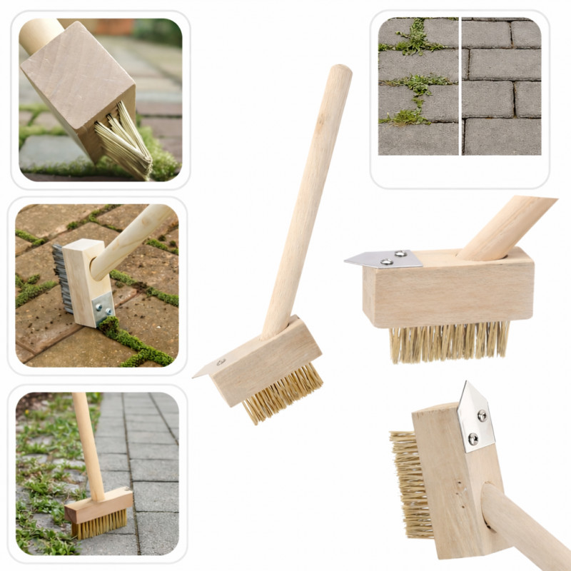 Scurta descriere Perie compacta pentru indepartarea buruienilor si curatarea rosturilor dintre pavele sau placi de trotuar. Este prevazuta cu racleta triunghiulara din otel si perie metalica pentru curatarea eficienta a muschiului, ierbii si murdariei. Manerul din lemn asigura o utilizare confortabila si control precis in zonele greu accesibile.
