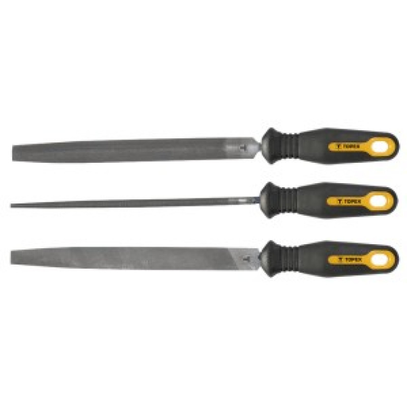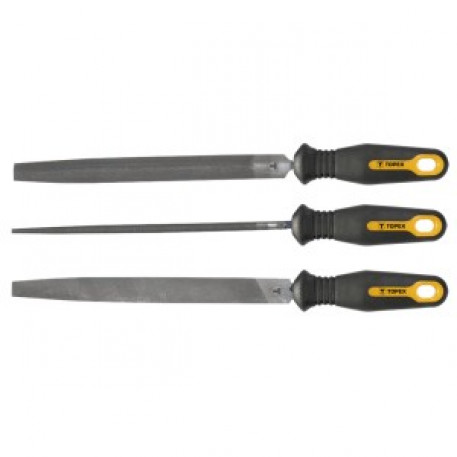Slefuitoare de metal TOPEX (ref. 06A230) pentru slefuirea metalului. Trei forme universale permit diverse aplicatii. Fabricat din otel T12 de inalta calitate. Manerul ergonomic acoperit cu material antiderapant ofera confort si siguranta in timpul lucrului. Marca TOPEX se adreseaza pasionatilor de bricolaj.
