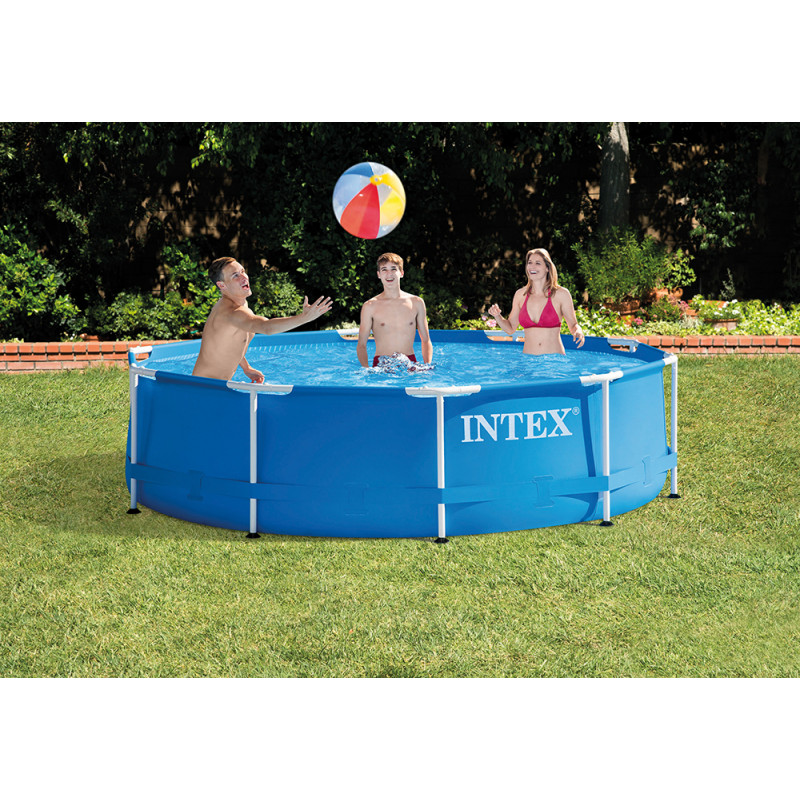 Cu aceasta piscina Intex Metal Frame, sunteti gata sa va racoriti in propria curte dintr-o data!Piscina poate fi montata rapid si usor. Materialele cu 3 straturi rezistente la strapungere asigura o rezistenta si o durabilitate sporita piscinei. Cadrul de otel robust garanteaza o constructie stabila. De asemenea, este usor de intretinut si depozitat, cand nu este utilizata. Luati acasa aceasta piscina si bucurati-va de o dupa-amiaza frumoasa de vara impreuna cu familia dumneavoastra! CARACTERISTICI: Asamblare in 20 -30 minute fara alte unelte Sistem de blocare automata a barelor metalice
