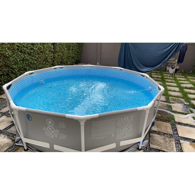 Linie de piscine premium Intex. Bucurati-va de ore intregi de distractie in aer liber cu piscinele Intex Prism Frame™. Durabil si usor de asamblat. Tubul rezistent din otel acoperit cu pulbere ofera un nivel ridicat de stabilitate. Distractia pentru intreaga familie este garantata in piscina cu dimensiunea 366 x 76 cm. Capacitatea de apa cand este umpluta la 90% este de 6.503 l. Stabilitatea si siguranta sunt garantate de captuseala care este suficient de dimensionata. Asamblare simplificata • Nu mai sunt stifturi de incercat sa aliniati si sa introduceti - pur si simplu impingeti toate tevile in imbinarile in T pentru o potrivire perfecta• Imbinarea in T creeaza o etansare etansa cu teava – impiedicand formarea ruginii interne• Imbinarile in T sunt proiectate pentru o rezistenta ridicata si sunt infuzate cu inhibitor UV pentru a asigura rezistenta la intemperii si o durata lunga de viata Informatii tehnice Piscina Ø 366 x 76 cm Continut de apa la 90% plin 6.503 l Grosimea captuselii podea 0,32 mm Grosimea captuselii pereti 0,50 mm Material PVCStructura Metal Culoare Gri Dimensiuni Lungime 366 cm Latime 366 cm Adancime 76 cm