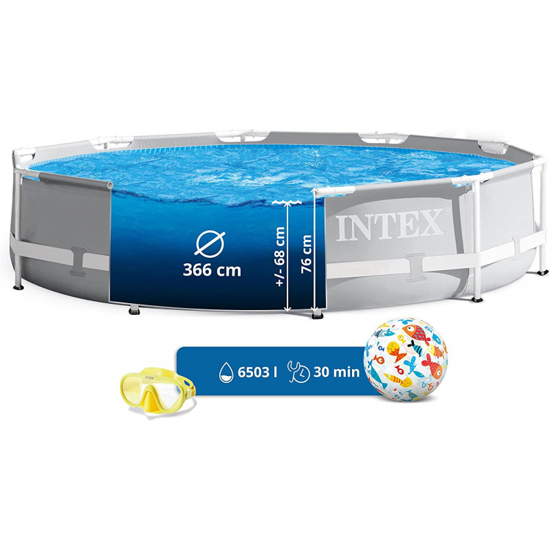 Linie de piscine premium Intex. Bucurati-va de ore intregi de distractie in aer liber cu piscinele Intex Prism Frame™. Durabil si usor de asamblat. Tubul rezistent din otel acoperit cu pulbere ofera un nivel ridicat de stabilitate. Distractia pentru intreaga familie este garantata in piscina cu dimensiunea 366 x 76 cm. Capacitatea de apa cand este umpluta la 90% este de 6.503 l. Stabilitatea si siguranta sunt garantate de captuseala care este suficient de dimensionata. Unitatea de filtrare cu cartus Krystal Clear Unitate de filtrare cu cartus C600, Capacitate de circulatie 1.893 l/h (inclusa) asigura o filtrare optima. Unitatea de filtrare nu numai ca va ofera o filtrare excelenta, ci are si toate conexiunile necesare. Tehnologia INTEX Hydro Aeration TM imbunatateste circulatia, filtrarea, claritatea apei si calitatea aerului din piscina dumneavoastra. Tehnologia INTEX Hydro Aeration Set de hidroaeratie pentru piscina dvs. INTEXInstalare usoara Poate fi adaptat oricand Circulatie si filtrare imbunatatite Particulele fine din apa se aduna si se aseaza pe fundul piscinei in timpul procesului de aerare, facilitand filtrarea si indepartarea sedimentelor prin sistemul de filtrare. Filtrarea si circulatia imbunatatite fac apa din piscina mai sanatoasa si mai confortabila. Prin amestecarea aerului cu apa, procesul de aerare include oxidarea fierului si manganului, eliminand petele in apa. Rezultatul este apa spumante din piscina care arata si se simte grozav!Cresterea ionilor negativi la suprafata apei S-a dovedit ca cresterea ionilor negativi imbunatateste prospetimea aerului din jurul piscinei, deoarece elimina poluantii din aer si neutralizeaza radicalii liberi care afecteaza calitatea aerului. Asamblare simplificata • Nu mai sunt stifturi de incercat sa aliniati si sa introduceti - pur si simplu impingeti toate tevile in imbinarile in T pentru o potrivire perfecta• Imbinarea in T creeaza o etansare etansa cu teava – impiedicand formarea ruginii interne• Imbinarile in T sunt proiectate pentru o rezistenta ridicata si sunt infuzate cu inhibitor UV pentru a asigura rezistenta la intemperii si o durata lunga de viata Informatii tehnice Piscina Ø 366 x 76 cm Continut de apa la 90% plin 6.503 l Grosimea captuselii podea 0,32 mm Grosimea captuselii pereti 0,50 mm Unitate de filtrare cu cartus Krystal Clear Unitate de filtrare cu cartus C600, Capacitate de circulatie 1.893 l/h INTEX Tehnologia hidroaeratiei Material PVCStructura Metal Culoare Gri Dimensiuni Lungime 366 cm Latime 366 cm Adancime 76 cm