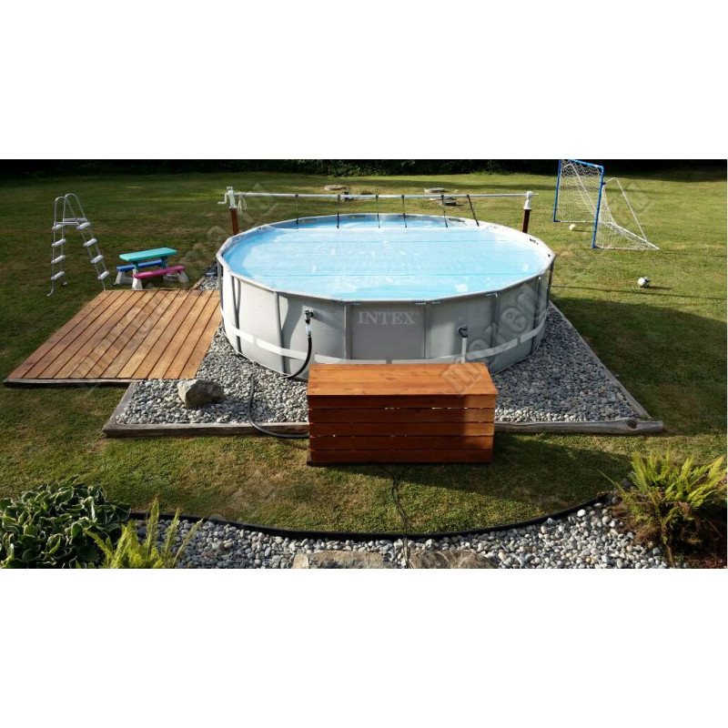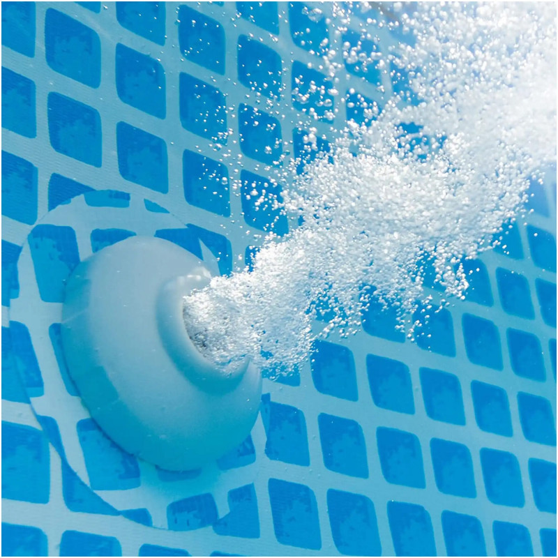 Piscina rotunda Intex 26726 NP cu cadru metalic este alegerea ideala pentru zilele toride de vara, oferind o experienta completa de relaxare si distractie in familie. Cu un diametru generos de 457 cm si o inaltime de 122 cm, aceasta piscina are o capacitate de umplere de 16805 litri, fiind perfecta pentru curti spatioase si utilizare intensiva pe durata intregului sezon estival. Construita din materiale durabile si ranforsata cu trei straturi de PVC si plasa de poliester, piscina asigura o rezistenta sporita in timp. Cadrul metalic galvanizat se monteaza rapid, fara unelte, iar la finalul sezonului, demontarea si depozitarea sunt la fel de simple. Modelul include pompa de filtrare cu cartus, scara de acces, folie de acoperire si folie de protectie pentru baza piscinei. De asemenea, supapa de scurgere permite golirea usoara a apei, prin conectarea directa la un furtun de gradina. Specificatii generale