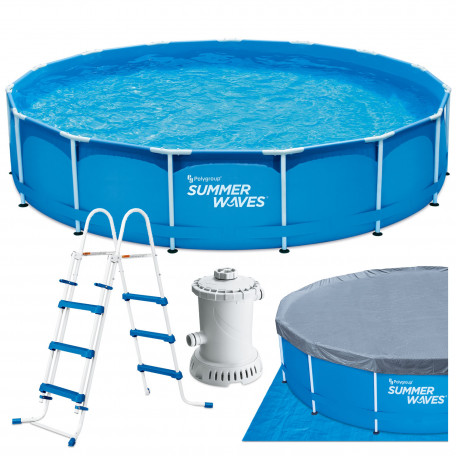 O piscina cu cadru este un companion tipic de vara si, in functie de dimensiunea piscinei si de indemanarea persoanei care o monteaza, poate fi asamblata in aproximativ 1 - 3 ore.O combinatie buna a doua tipuri de piscine Datorita cadrului exterior, piscinele cu cadru combina stabilitatea unei piscine cu perete din otel cu flexibilitatea unei piscine cu montare rapida. Acestea pot fi montate rapid la primele raze de soare si demontate rapid dupa lunile de vara. Cu toate acestea, in comparatie cu o piscina rapida, acestea ofera mult mai multa apa si distractie de inot in propria gradina datorita volumului lor mai mare.Ca orice piscina cu cadru, piscina cu cadru Summer Waves Active are un cadru tubular exterior tipic. Acesta sustine o captuseala din PVC albastru aprins, care formeaza bazinul piscinei de Ø 457 x 91 cm.Cei 13.169 de litri de apa pe care ii contine piscina sunt curatati de murdaria fina si grosiera de o pompa cu filtru cu cartus. Capacitatea de filtrare a pompei este de 2.270 l/h. Un skimmer este, de asemenea, integrat in pompa, astfel incat murdaria mai grosiera sa fie indepartata de la suprafata apei.In plus fata de pompa de filtrare, pachetul de livrare mai include cartusul de filtrare corespunzator, o scara pentru piscina, o copertina pentru piscina, o panza de protectie a solului si, in cazul deteriorarii captuselii piscinei, un kit de reparatii. Baza si ingrijirea In mod normal, o piscina cu cadru nu necesita o fundatie, cu toate acestea, din cauza incarcaturii mari de apa, ar trebui selectata intotdeauna o baza stabila si robusta. In plus fata de piscina, trebuie acordata atentie si suporturilor. Acestea au o contributie semnificativa la stabilitate si, prin urmare, au nevoie, de asemenea, de o baza puternica si stabila. De asemenea, suprafata trebuie sa fie absolut plana si lipsita de pietre, radacini sau alte obiecte ascutite care ar putea deteriora captuseala piscinei. Prin urmare, se recomanda intotdeauna o baza buna pentru piscina, fie o panza pentru piscina, fie o prelata pentru piscina, fie covoare de baza pentru piscina.Intretinerea este similara cu cea a unei piscine cu pereti din otel. Calitatea apei trebuie verificata periodic, apa trebuie curatata de particulele grosiere si fine de murdarie, iar piscina trebuie acoperita cu o prelata atunci cand nu este utilizata.Atunci cand piscina este demontata dupa vara - spre deosebire de o piscina cu pereti din otel, piscina nu trebuie montata pentru iarna - captuseala piscinei trebuie sa fie complet uscata si curatata inainte de a fi depozitata in camerele de iarna. Piesele cadrului trebuie, de asemenea, sa fie depozitate curate si uscate pe timpul iernii.In acest fel, nimic nu sta in calea distractiei la piscina anul viitor.
