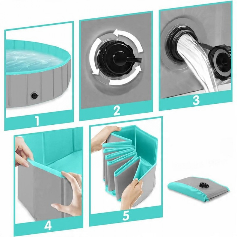 Scurta descriere: Aceasta piscina pliabila este ideala atat pentru caini, cat si pentru copii, oferind un spatiu sigur si practic pentru racorire sau joaca. Fabricata din materiale rezistente si dotata cu valva de scurgere pentru golire rapida, piscina este usor de depozitat datorita sistemului de pliere compact.