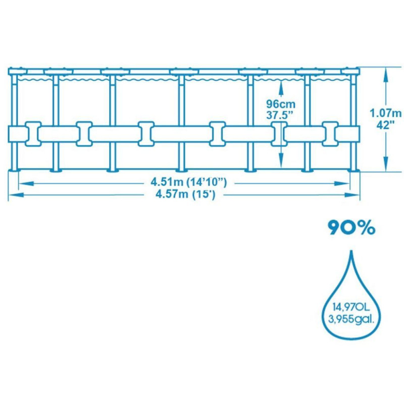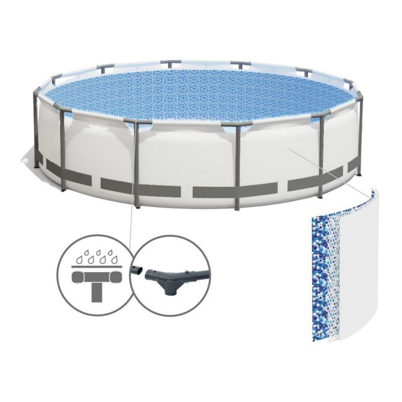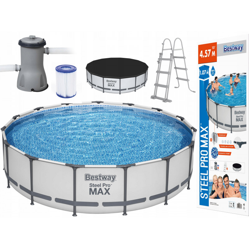 Transforma-ti gradina intr-un adevarat centru de relaxare cu piscina supraterana Bestway Steel Pro MAX. Cu un diametru generos de 457 cm si o inaltime de 107 cm, aceasta piscina este alegerea perfecta pentru familii sau grupuri care vor sa se bucure de racoarea verii. Cadrele metalice rezistente la coroziune si captuseala Tritech durabila ofera stabilitate excelenta si rezistenta impotriva intepaturilor si razelor UV. Sistemul Click Connect permite o asamblare rapida si sigura, fara frecari intre componentele metalice. Montajul complet dureaza aproximativ 40 de minute cu ajutorul a 2-3 persoane. Piscina este echipata cu toate accesoriile esentiale: pompa cu filtru cu debit de 3.028 l/h, cartus filtrant, scara robusta de 1.07 m, prelata pentru acoperire si kit de reparatie. Captuseala interioara are un imprimeu Prismatic Stone care creeaza un efect vizual elegant si relaxant. Specificatii generale