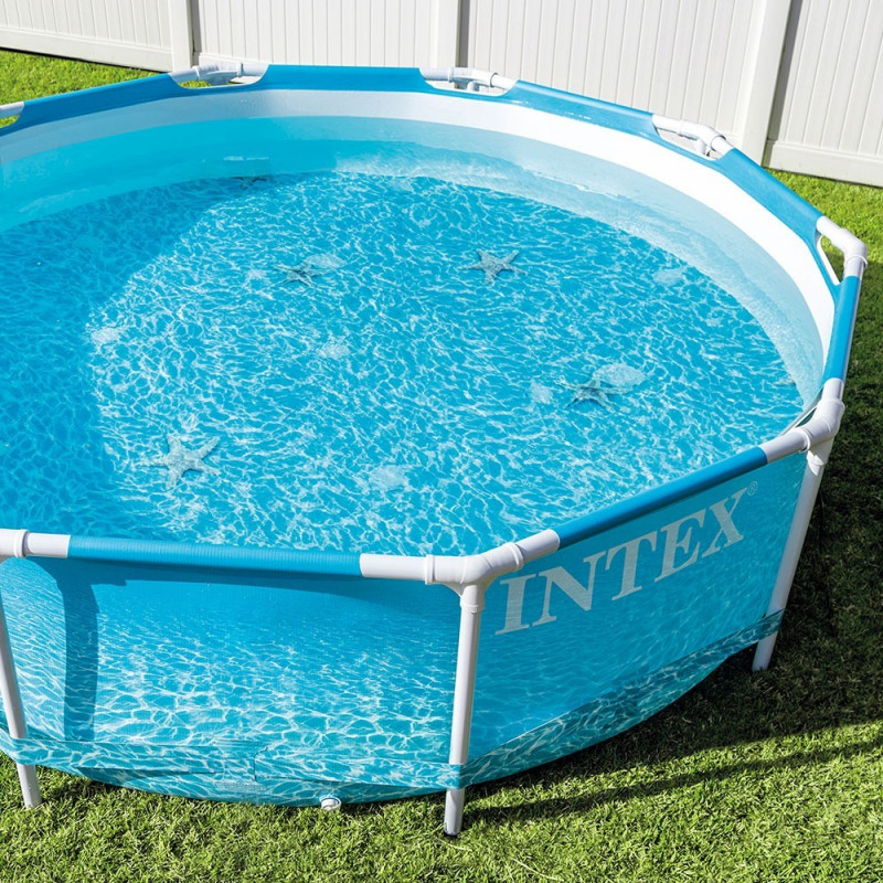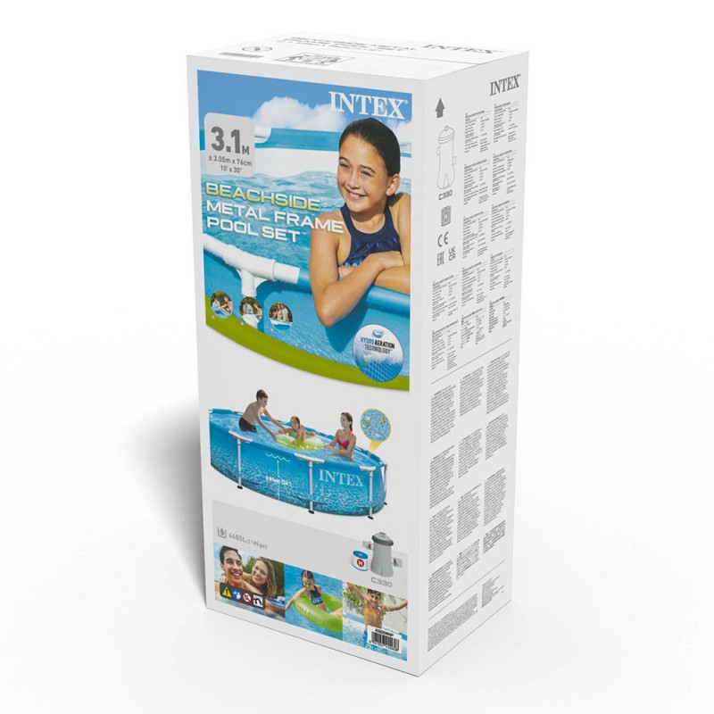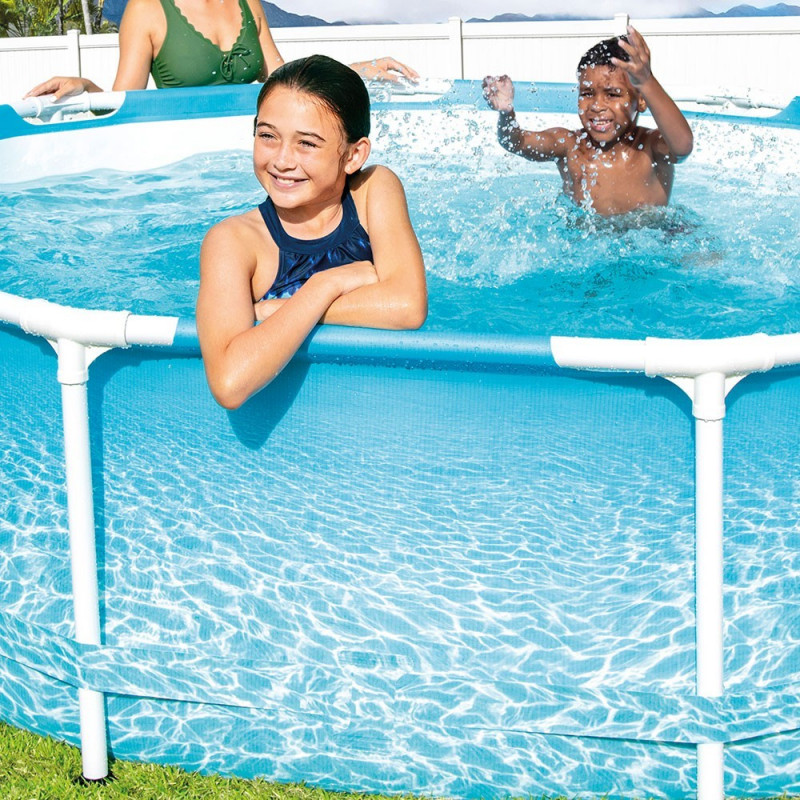 Piscina Metal Frame Ocean de la Intex aduce spiritul vacantei direct in curtea ta. Cu un design fotorealist care imita adancimile unui ocean turcoaz, aceasta piscina rotunda devine punctul central al verii pentru copii si adulti deopotriva. Are un diametru de 305 cm si o adancime de 76 cm, oferind un volum de 4.5 metri cubi de apa. Este suficient de incapatoare pentru joaca in familie si relaxare in zilele toride. Structura metalica este robusta, stabila si rezistenta la coroziune, in timp ce linerul triplu stratificat asigura durabilitate si rezistenta la zgarieturi si uzura. Montajul este simplu si rapid – piscina poate fi pregatita pentru utilizare in aproximativ 30 de minute. Este livrata impreuna cu o pompa de filtrare cu debit de 1 m³/ora, care mentine apa curata si cristalina pe toata durata sezonului. Dupa incheierea verii, piscina se demonteaza usor si poate fi depozitata compact. Designul colorat si realist transforma orice curte intr-un loc de joaca atragator si relaxant. Este o solutie perfecta pentru familiile care doresc sa creeze amintiri frumoase fara a parasi confortul propriei case. Specificatii tehnice