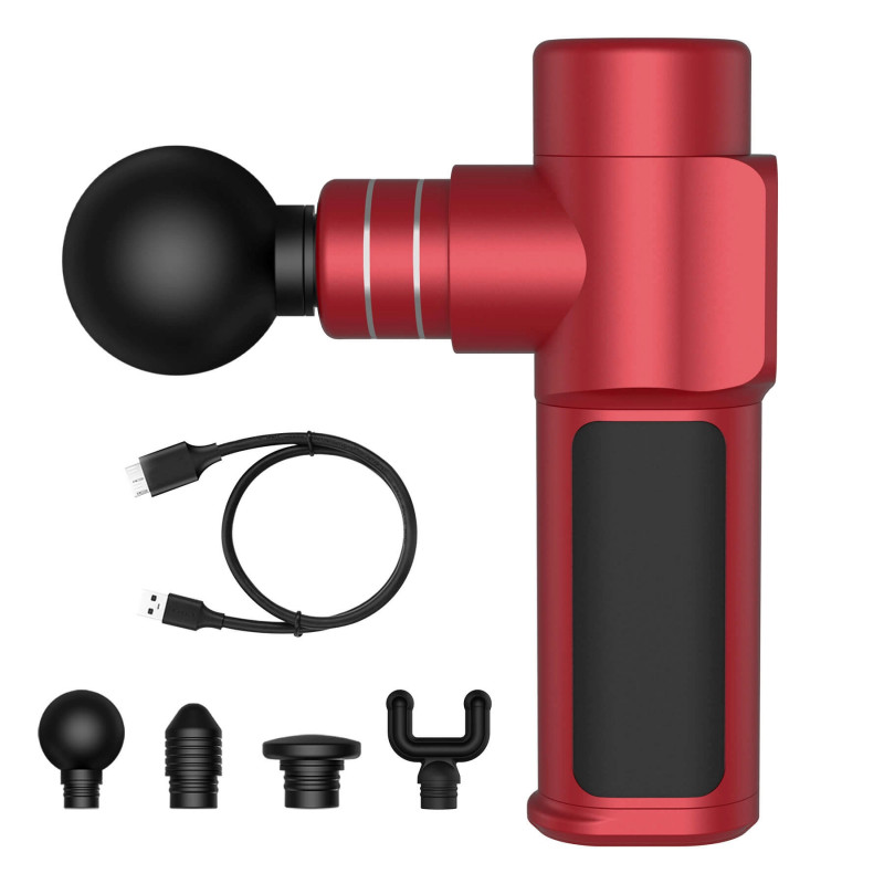 Acest aparat de masaj tip pistol ajuta la relaxarea muschilor si imbunatateste circulatia sangelui. Cu ajutorul celor patru capete interschimbabile veti obtine diverse tipuri de masaj cu un singur aparat: capatul tip glont pentru masaj profund intr-un punct anume, capatul plat pentru toate partile corpului, capul tip furca pentru coloana vertebrala si gat, capul sferic pentru muschii mari. Cele trei viteze va ofera posibilitatea de a obtine un masaj de relaxare, de activare a muschilor sau masaj profund. Bateria cu litiu de 2500 mAh cu cablu de incarcare rapida tip-c, poate fi incarcata complet in 2,5 ore, apoi functioneaza timp de 7 ore continuu. Tehnologie certificata exclusiva de reglare a zgomotului si motor fara perii cu cuplu ridicat, genereaza zgomot mai mic de 35 db atunci cand furnizeaza cu percutie de 1600-3200 in 3 trepte. Manerul ergonomic din silicon antiderapant si butonul soft touch ce poate fi accesat direct cu degetul pe ecranul LCD, fac ca masajul sa fie usor de controlat.Specificatii:Turnare integrala din aliaj de aluminiuManer ergonomic din silicon antiderapantPercutie de 1600-3200 in 3 trepteButon soft touch ce poate fi accesat direct cu degetul pe ecranul LCDCapacitate baterie: 2500mAhZgomot: 40dBTimp de functionare: 7 oreVine cu 4 capete interschimbabileTimp de incarcare: 2,5 oreDimensiuni reduse, incape intr-un buzunar 140.5*82*38mmIncarcator tip USB, permite incarcarea la priza sau laptopPachetul include husa de protectieGreutate: 600 gProducator: Merach