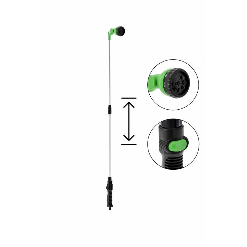 Scurta descriere Pistolul telescopic pentru udare este un instrument practic pentru irigarea eficienta a gradinii. Datorita lungimii reglabile intre 71 si 106 cm, permite accesul usor la plante, straturi de flori sau zone mai greu de atins. Constructia din aluminiu si ABS ofera rezistenta si greutate redusa, iar cele 8 moduri de pulverizare permit adaptarea jetului in functie de tipul de plante sau suprafata de udat.