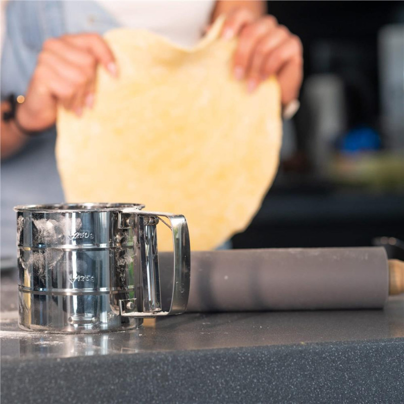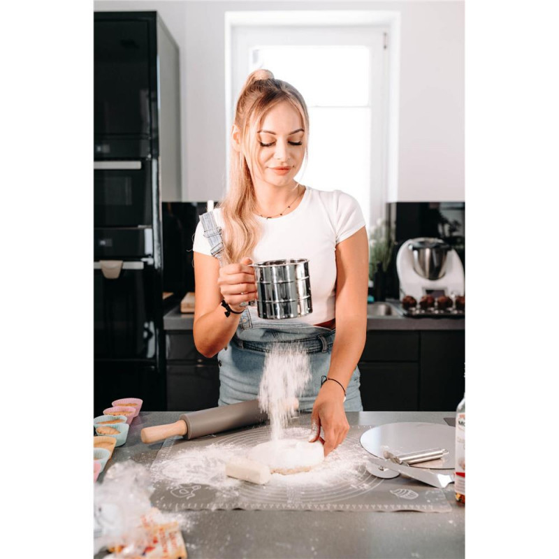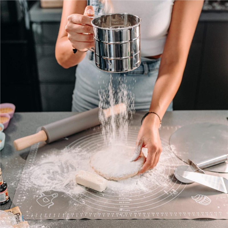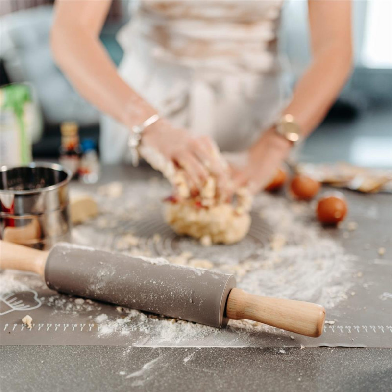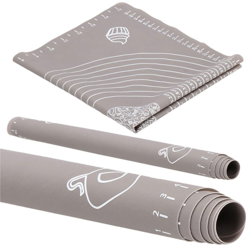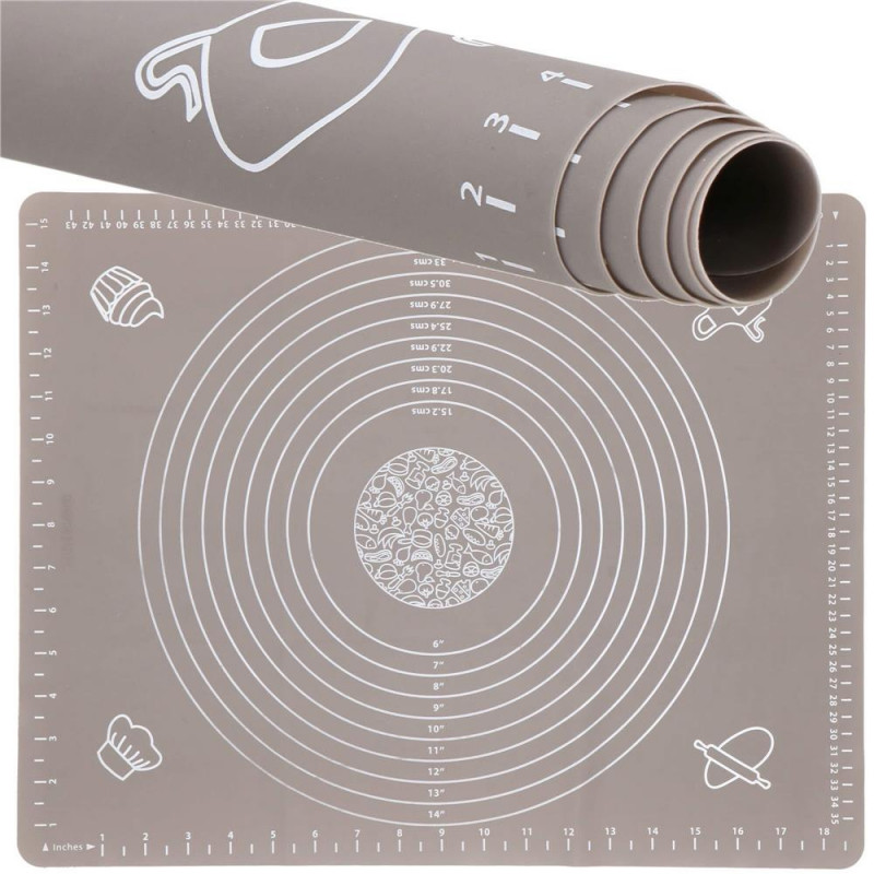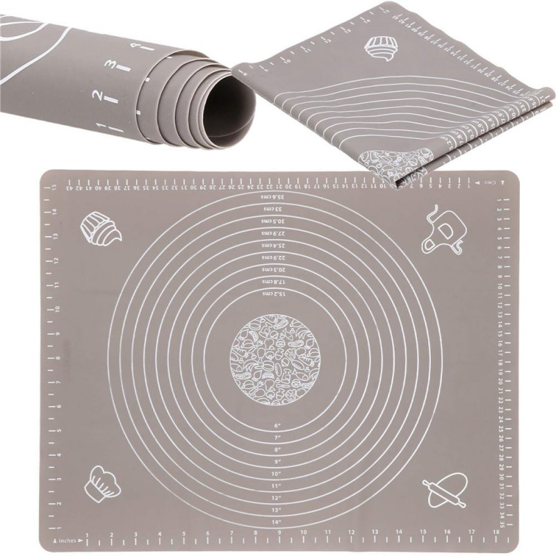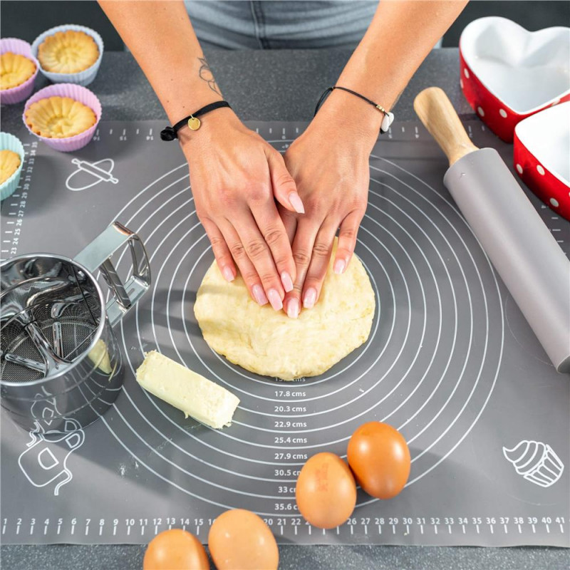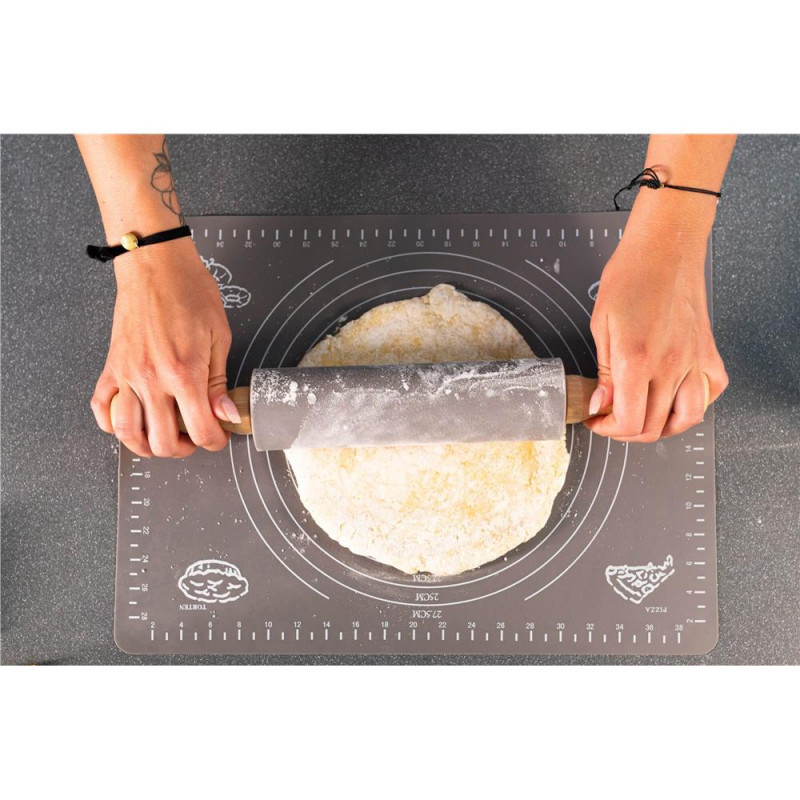 Este antiderapant si nu va aluneca atunci cand framantati aluatul Orice bucatar de casa stie exact cum este sa framanti aluatul care se tot lipeste de blatul de lemn al mesei. Alegand accesoriul nostru din silicon, veti putea face aluat, galuste sau pizza fara niciun stres suplimentar. Cu cei mai mici membri ai familiei, puteti decupa cu usurinta diferite modele pentru turta dulce sau prajituri, iar acestea se vor desprinde de pe covoras fara probleme. Covorasul este fabricat din materiale de cea mai buna calitate. Alegand siliconul, se garanteaza ca nu va absorbi mirosurile sau umezeala din lichidele adaugate pentru prajituri. In plus, acest material este sigur pentru sanatate si neutru din punct de vedere alimentar. Adesea, retetele din cartile de bucate sau de pe bloguri au dimensiuni specifice ale prajiturilor care trebuie facute. Din acest motiv, plansa de patiserie din silicon este dotata cu gradatii de lungime si diametru. De asemenea, merita mentionat faptul ca acestea nu sunt convexe, deci nu se vor vedea pe aluat. Planuiti o excursie cu cortul, iar gatitul este un hobby si intentionati sa va aratati abilitatile in vacanta? Nici o problema! Puteti lua placa de patiserie din silicon cu dvs. pur si simplu rulati-o, astfel incat sa incapa in orice bagaj.
