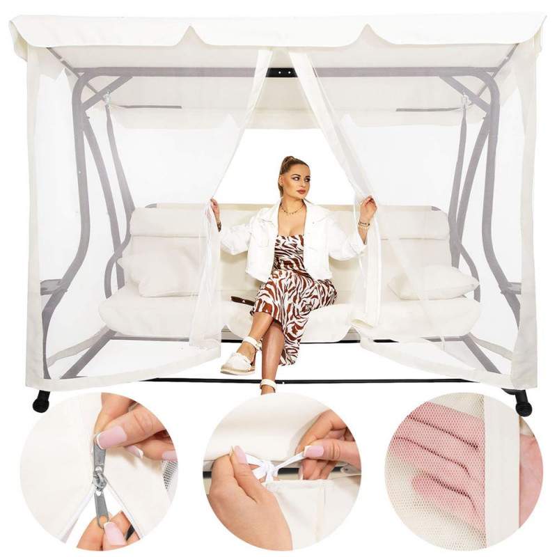 Scurta descriere Plasa antiinsecte universala pentru leagan de gradina, confectionata din poliester rezistent si impermeabil, cu fermoar central pentru acces facil. Asigura protectie eficienta impotriva insectelor si se monteaza rapid cu ajutorul curelelor de prindere.