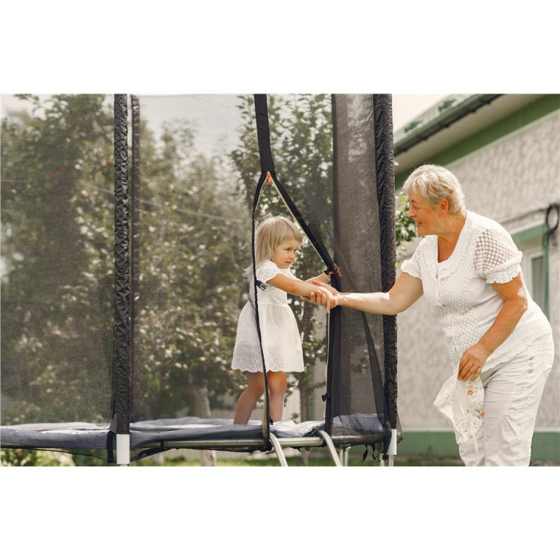 Plasa de siguranta este un acesoriu util pentru a impiedica caderea utilizatorului in afara zonei de sarituri. Plasa de siguranta este fabricata din materiale rezistente la umiditate si soare, este prevazuta cu fermoar practic la intrare si se instaleaza rapid si usor. Plasa de siguranta se instaleaza pe 6 stalpi si este potrivita pentru trambulinele cu diametrul de 244 cm .
