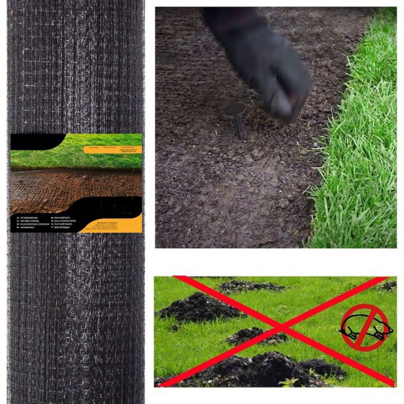 Nici un animal nu este ranit de plasa - nici un animal nu este prins sau ucis Dimensiunea special adaptata a ochiurilor de plasa de 16 x 16 mm asigura ca niciun daunator nu poate rupe plasa si trece prin ea. Ca urmare, radacinile plantelor sunt protejate, iar solul va continua sa aiba o structura consolidata. Plasa este perfecta pentru pavilioane sau gradini, pentru a impiedica cartitele sau soarecii sa provoace daune plantelor. Cu ea, nu trebuie sa va faceti griji cu privire la faptul ca acestea cresc mai incet sau ca apar gauri si cartite in straturi. Plasa densa intareste si stabilizeaza si mai mult solul. CUM SE FIXEAZA PLASA? Inainte de a pregati locul pentru prevenirea daunatorilor trebuie sa sapati aproximativ 10 cm de sol. Raspanditi plasa in mod egal pe suprafata pregatita si apoi infigeti ancorele in plasa. Atunci cand suprafata de protejat este mare si ochiurile de plasa trebuie sa fie conectate intre ele, cel mai bine este ca acestea sa fie suprapuse pe 10-15 cm. Odata ce ancorele au fost infipte, se va asigura ca plasa nu se va misca. Pamantul ramas in urma excavatiei trebuie introdus in grila si apoi tasat.
