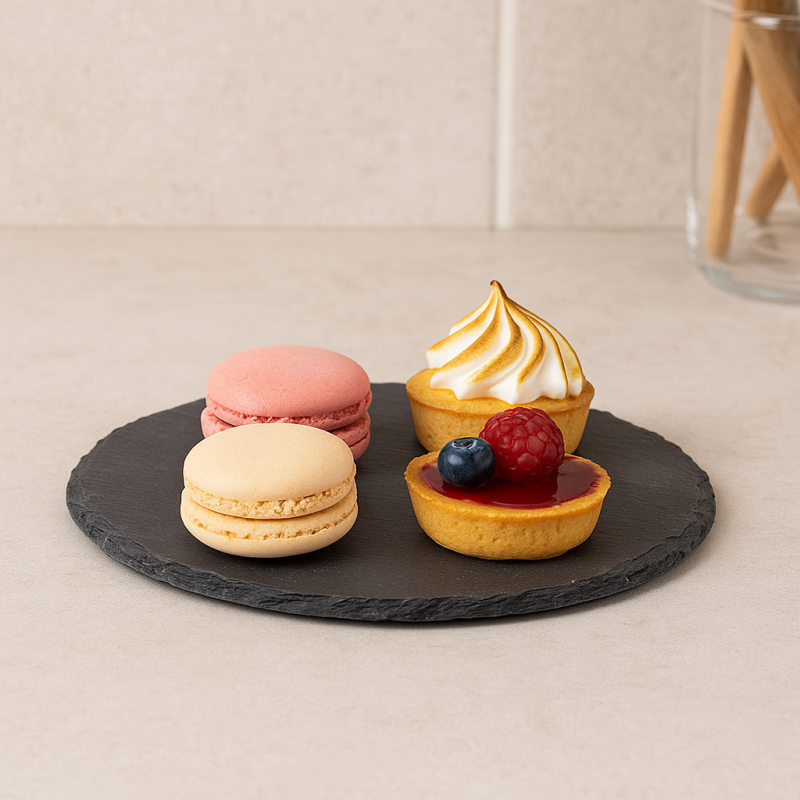 Scurta descriere Platoul de servire din ardezie de la Atmosphera imbina naturaletea materialelor brute cu eleganta moderna. Perfect pentru servirea aperitivelor, branzeturilor sau deserturilor, ofera un contrast vizual placut datorita suprafetei sale negre mate. Compact si rafinat, este ideal pentru mesele cu stil sau prezentarile culinare sofisticate.