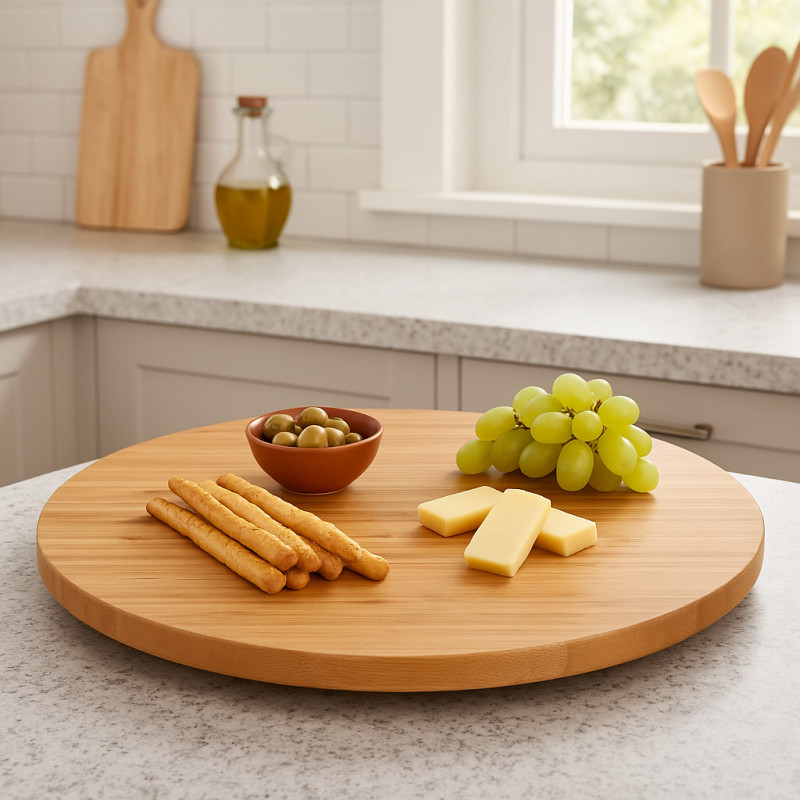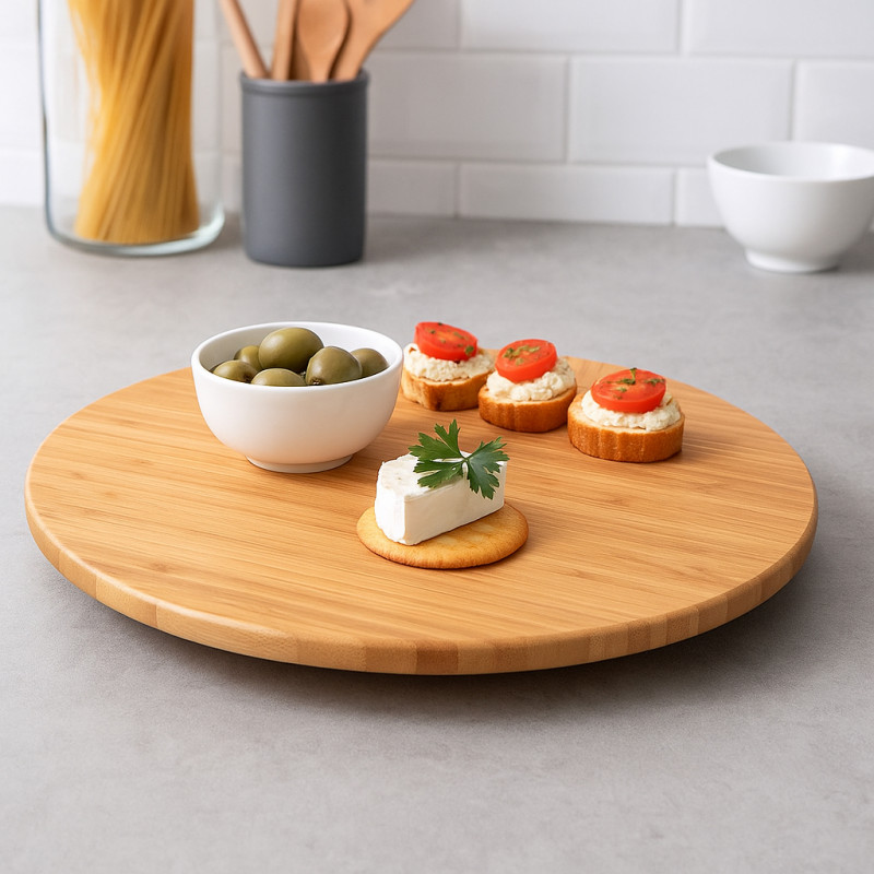 Scurta descriere Platoul rotativ 5 Five din bambus, cu diametru de 50 cm, este alegerea ideala pentru servirea eleganta a preparatelor. Functional si solid, permite acces usor la alimente pentru toti invitatii, adaugand in acelasi timp un aspect natural si modern decorului mesei.