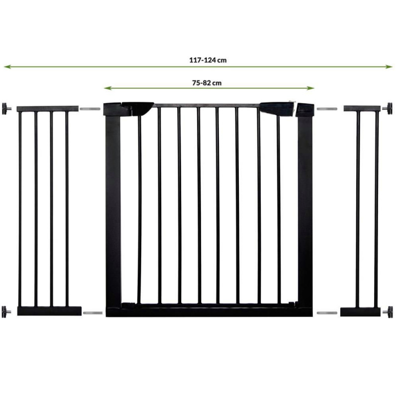 Informatii suplimentare: inchidere automata, se deschide in ambele sensuri, securitate dubla, margini sigure, asamblare usoara Poarta de siguranta sigura si solida pentru copii sau pentru animale de dimensiuni mici si medii. Poarta poate separa anumite zone din casa care sunt periculoase pentru copiii nostri. Protejeaza scarile sau usile de intrarea necontrolata a copiilor. Poarta este fixata cu ajutorul unor suruburi speciale, ceea ce face ca montarea si demontarea sa fie extrem de usoara si rapida. Reglarea permite ca poarta sa fie montata intre cadrele usilor cu latimea de 75-124 cm. Margini sigure - elementele utilizate in cadrul portii au forme ovale special rotunjite, astfel incat copilul nu are posibilitatea de a introduce si prinde degetele. Designul securizat al balamalei impiedica prinderea degetelor. Inchidere automata - acesta este un mecanism de autoinchidere a usii atunci cand este deschisa, deosebit de util atunci cand mainile noastre sunt ocupate.Dubla securitate - impiedica deschiderea usii de catre un copil. Mecanism de blocare - atunci cand este deschisa la un unghi mai mare de 90 de grade, usa va ramane deschisa in permanenta pentru a preveni inchiderea necontrolata. Sistem stretchkeep - poarta nu trebuie sa fie insurubata de perete, deoarece presiunea portii face ca aceasta sa se tina singura pe loc. Puteți monta această poartă conform următoarelor dimensiuni: 75-82 cm, 100-110 cm, 89-96 cm, 117-124 cm