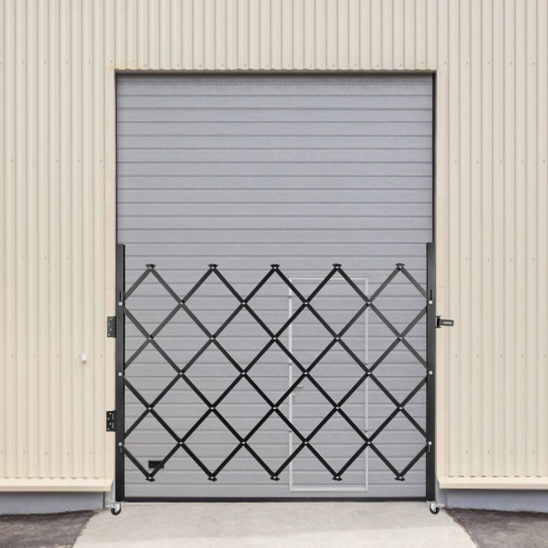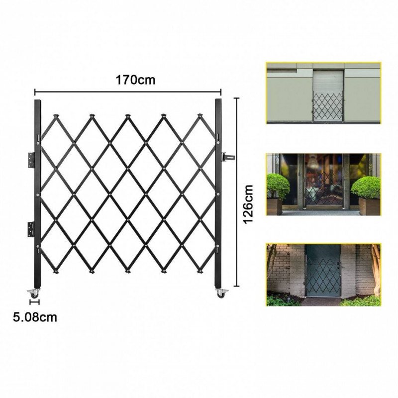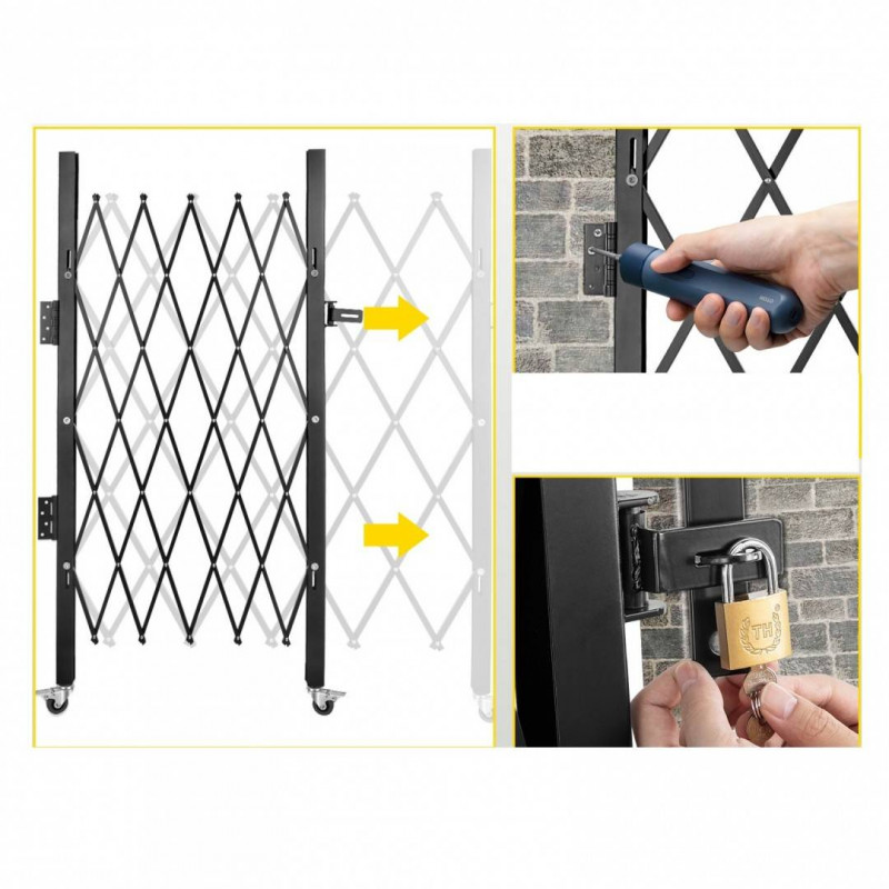 Poarta pliabila acordeon, Otel, Negru, 2 x roti, Latime