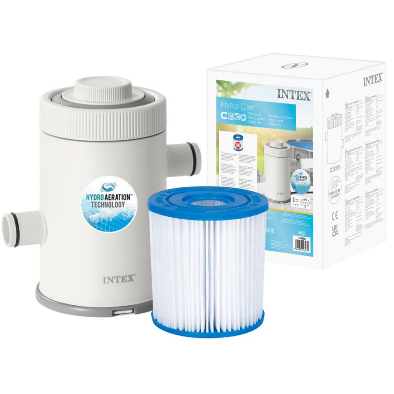 Pompa de filtrare Intex 26602 este o solutie eficienta si accesibila pentru mentinerea apei curate in piscinele mici. Echipata cu tehnologia Hydro Aeration, aceasta ajuta la oxigenarea apei si la eliminarea impuritatilor, oferind o experienta de inot mai placuta si mai sanatoasa. Cu un debit de 1250 litri pe ora, aceasta pompa este compatibila cu piscinele Intex Easy Set si Metal Frame cu diametrul de pana la 305 cm. Sistemul de filtrare cu cartus este usor de utilizat si intretinut – cartusul tip H se poate clati si se inlocuieste la fiecare doua saptamani pentru eficienta maxima. Specificatii generale