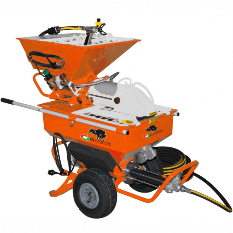Pompa de inalta presiune cu surub, perfect potrivita pentru atomizarea si aplicarea tuturor tipurilor de glet, de umplere, nivelare si finisare, aplicarea perfecta a straturilor finale de finisare var/vopsea sau stucco decorativ, a tencuielilor decorative cu granulatie pana la 1 mm si a membranelor izolante pe baza de solventi sau bitum;