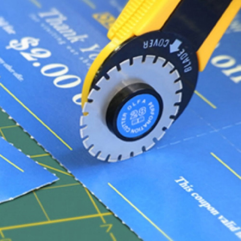 Cutit-cutter de la OLFA, calitate japoneza Cutit-cutter cu lama rotunda de 28 mm, cu mai multe perforatii, adaptate pentru utilizare frecventa. Lame: PRB28-2