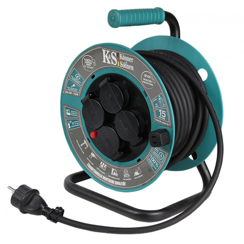 Cablul prelungitor KS CR-15M cu o lungime a cablului de 15 metri este potrivit pentru conectarea a până la 4 dispozitive în același timp la rețeaua de 230V în locuri departe de prizele staționare. Are o clasă de protecție IP44, care permite utilizarea sa la exterior, precum și la umiditate ridicată, datorită protecției împotriva pătrunderii accidentale a picăturilor de apă și a particulelor solide.