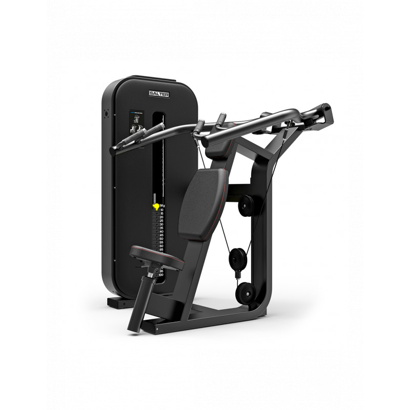 SPECIFICATII TEHNICE- Cadrul din oțel armat de 3 mm.@- Tratament antirugină și protecție specială la punctele de sudură.@- Acoperire cu pulbere de poliester la 200º în negru mat.@- Polițe de transmisie FIBABS, cu rulmenți cu bile, realizate din material compozit foarte rezistent la frecare și adaptate la diametrul cablului.@- Cablu de transmisie cu grosimea de 6 mm, extrem de flexibil și rezistent. Include tensor pentru reglarea tensiunii.@- Protecție de încărcare termoformată față și spate, termoformată neagră capace de protecție a sarcinii.@- Opțional: personalizarea capacelor.@- Tavă dublă suport obiecte în partea superioară.@- Scaunele și spătarele sunt nedeformabile sub presiune, realizate din poliuretan injectat (spumă).@- Tapițerie antibacteriană MRSA, SANITIZATĂ, ignifugă Standard M2, UNE 1021 și fără solvenți și substanțe nocive Standarde OEKO-TEX. Cusături roșii intense.@- Mânere de reglare realizate din aluminiu anodizat pentru a preveni rugina.- Mânere injectate cu material din cauciuc antiderapant, neporos.@- Scaun anatomic reglabil prin piston cu gaz.@- Goniometru din oțel inoxidabil cu 3 poziții pentru reglarea poziția de pornire/unghiul exercițiului.@- Mișcare convergentă.- Ghidaje pentru plăci din oțel inoxidabil.@- Plăci de 5 kg cu bucșe cu frecare redusă.@- Selector de sarcină cu sistem de siguranță magnetic și cablu de siguranță.@- Sarcina de lucru: 100 kg.@- Pictogramă de descriere a exercițiului.@- Cod QR cu acces la video de utilizare a mașinii.@- Dimensiuni: 147 x 127 x 157 cm.@- Declarație de conformitate CE.@- Utilizare comercială.