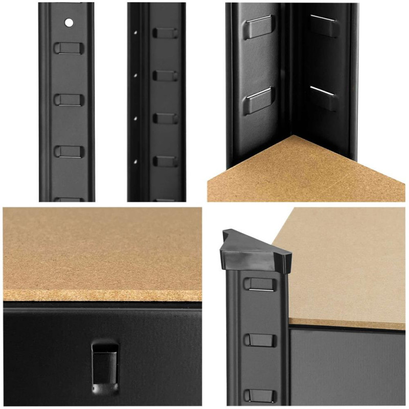 Gama larga de aplicatii Echipat cu 5 rafturi rezistente, unde fiecare raft poate suporta o sarcina de 165 kg. Nu uitati sa distribuiti greutatea in mod egal pe rafturi! Evitati sarcinile punctiforme pentru a minimiza riscul de defectiune.Datorita reglajului larg al inaltimii rafturilor, puteti crea, de exemplu, 2 rafturi mai mici in loc de unul mare. Acest lucru este excelent pentru camerele mai mici, unde 1 biblioteca mare nu se va potrivi neaparat. Raftul este sigur pentru utilizatorii care il folosesc. Constructia stabila si robusta mentine raftul intr-o singura pozitie. Colturile rotunjite exclud posibilitatea de ranire, iar capacele suplimentare din plastic impiedica zgarierea podelei.