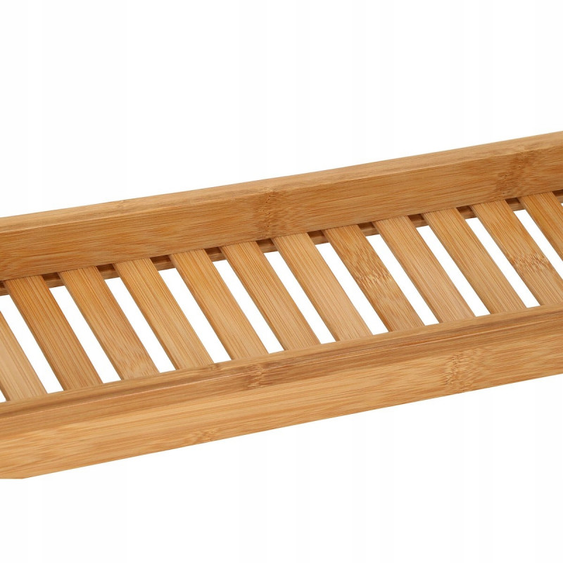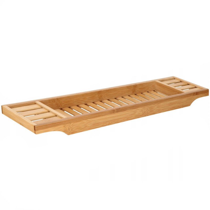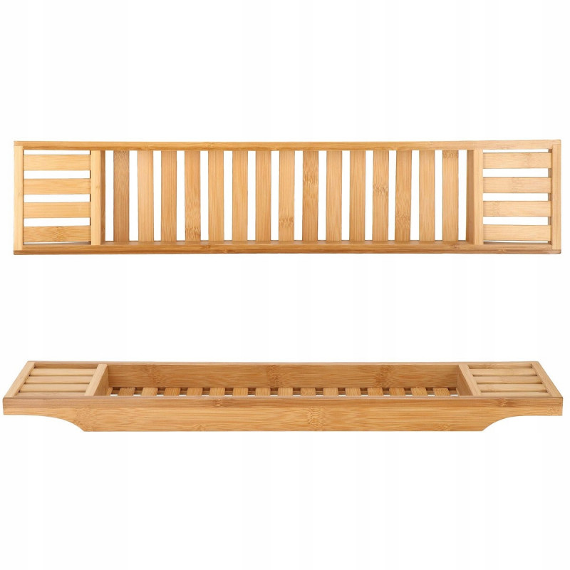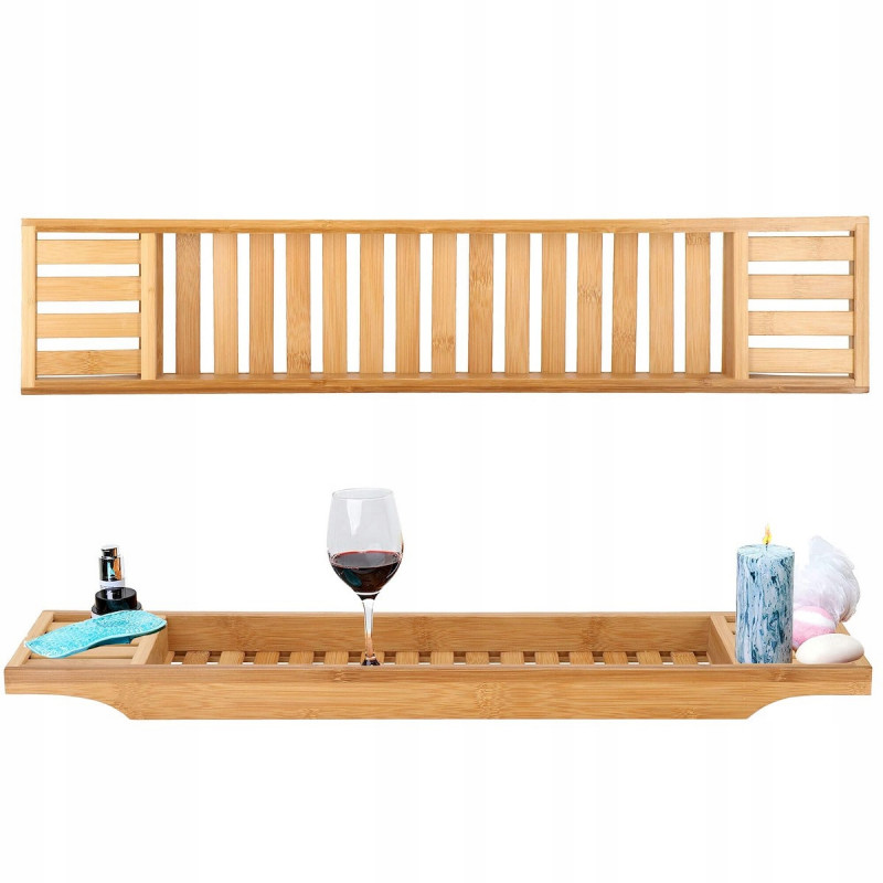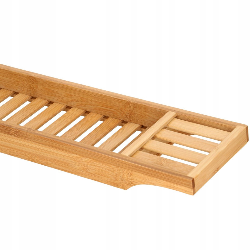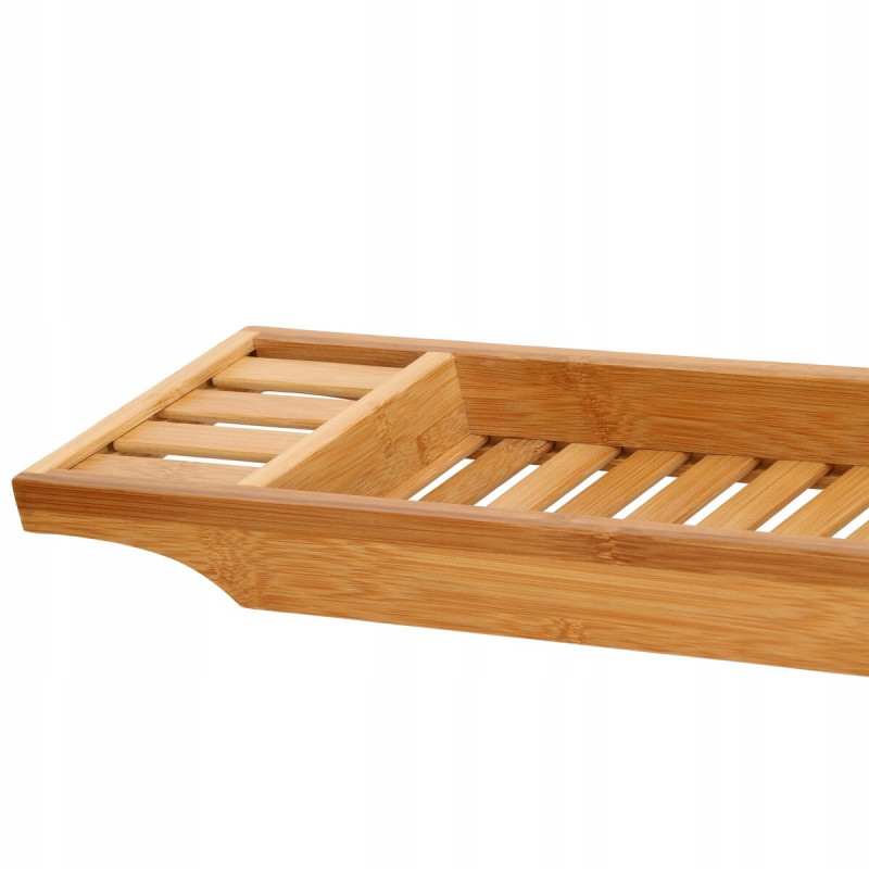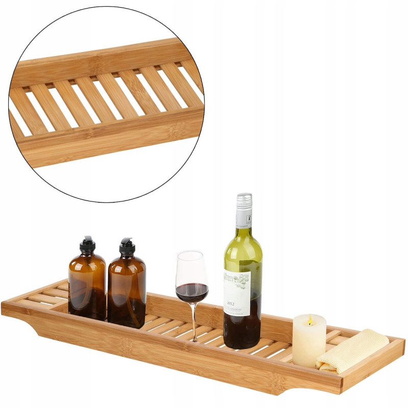 Puncte forte: stabilitate, functionalitate, versatilitate, performanta estetica Raftul pentru cada va face baia dvs. sa se simta ca intr-un SPA de lux. Utilizarea unui raft pentru cada din bambus va transforma baia dvs intr-o experienta relaxanta cu un pahar de vin, serialul preferat sau o carte. Este perfecta si ca organizator pentru produse cosmetice si accesorii de baie.Raftul pentru cada va permite sa utilizati dispozitive mobile precum un telefon, tableta sau i Pad in timp ce faceti baie. Suprapunerea din lemn pentru cada permite utilizarea si pozitionarea confortabila in timp ce vizionati un film sau cititi o carte.FUNCTIONALITATERaftul este spatios, poate adaposti produse cosmetice, accesorii de baie, precum si un telefon sau o carte de citit. Produsul este realizat din bambus natural de cea mai inalta calitate, ceea ce il face durabil. Iar suprafata sa lacuita creste rezistenta la apa si mucegai. Datorita designului si functionalitatii universale, se va potrivi perfect cu decorul oricarei bai.SECURITATEIn timpul unei bai relaxante, nu trebuie sa va faceti griji cu privire la dispozitivele mobile sau alte obiecte asezate pe raftul cazii, deoarece adanciturile special realizate in acesta le impiedica sa alunece de pe raft.