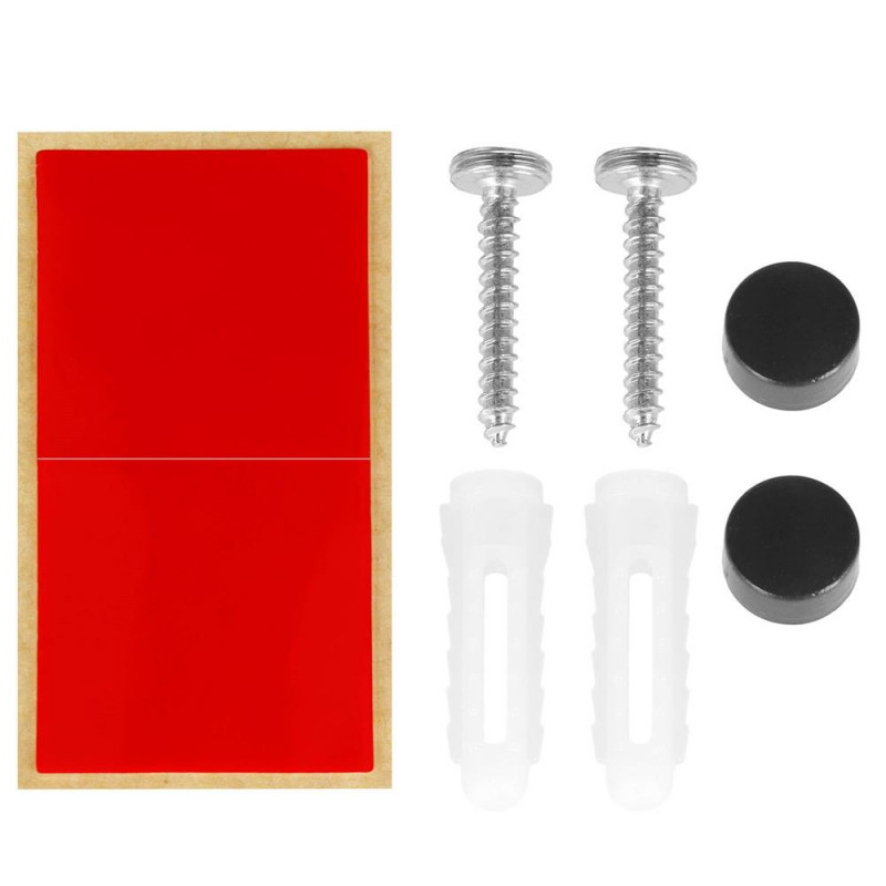 Montare: neinvaziva (banda adeziva si banda dublu-adeziva inclusa) sau pe suruburi (2 buc. + 2 dopuri negre incluse)