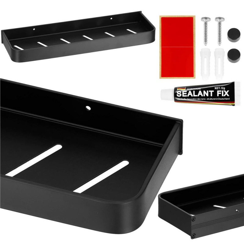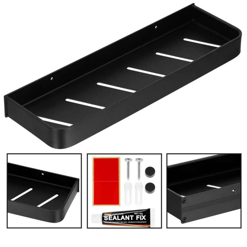 Material durabil. Raftul de baie montat pe perete este fabricat din material de inalta calitate, cu un finisaj mat. Este sigur ca va dura multi ani, pastrandu-si aspectul. Datorita suprafetei sale netede si rezistente, mentinerea curateniei este foarte usoara si nu va va cauza corvoade si batai de cap plictisitoare atunci cand faceti curatenie in baie.Asamblarea acestui accesoriu util pentru baie este gratuita. Poate fi neintruziva si nu necesita gaurire sau, pentru o mai mare stabilitate, aveti optiunea de a folosi suruburile incluse si gaurile pre-gaurite pentru montarea pe perete. Alegeti metoda pe care o considerati mai convenabila si montati-o in unul dintre cele doua moduri posibile.