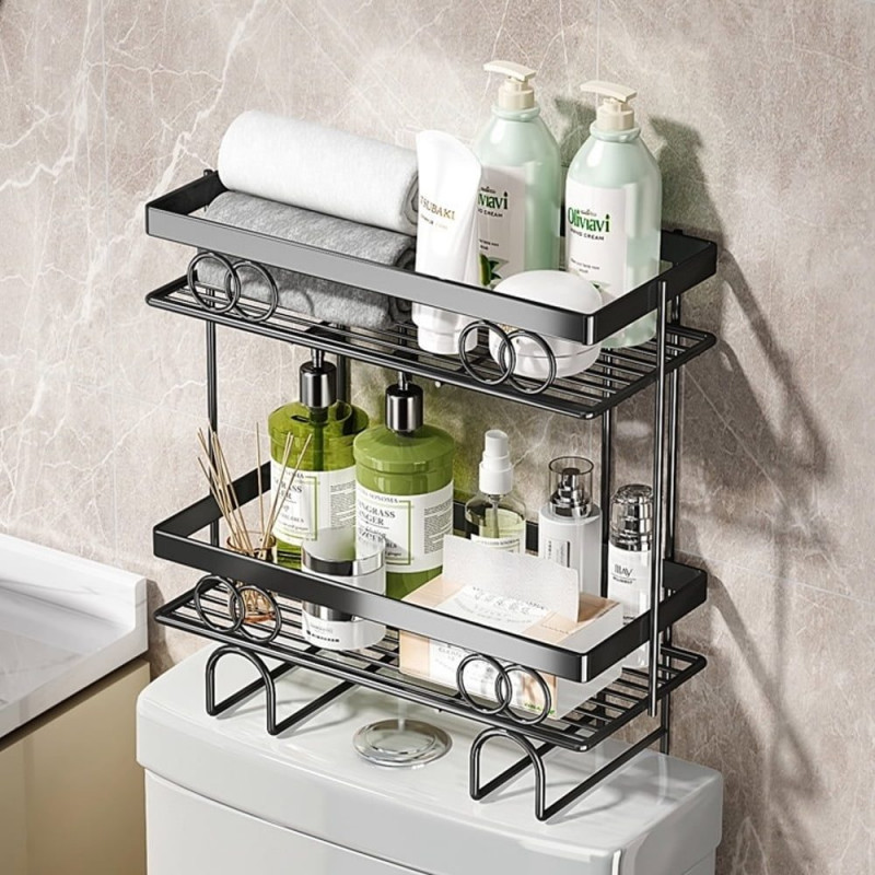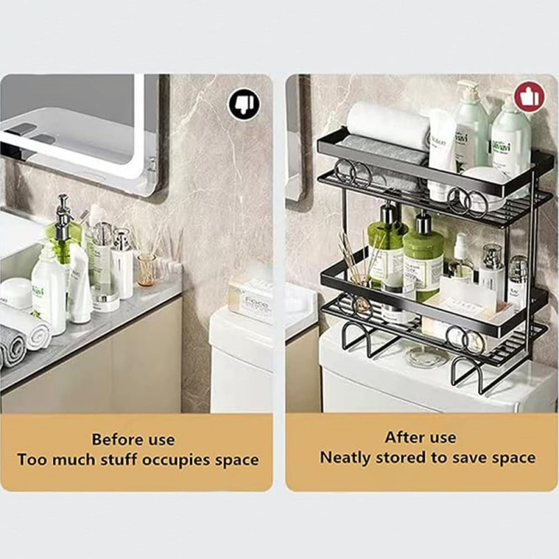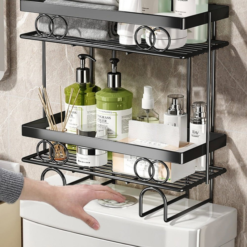 Raftul de depozitare de amplasat deasupra vasului de toaleta, va fi cu siguranta solutia perfecta pentru a crea mai multe spatii suplimentare de depozitare intr-o baie supraaglomerata sau in spalatorie. Alcatuit dintr-un cadru din otel de calitate superioara si cateva accesorii, raftul de depozitare este extrem de durabil si stabil. Organizatorul foloseste spatiul neutilizat de deasupra toaletei, creand mai multe spatii suplimentare de depozitare unde puteti depozita detergenti lichizi sau solizi, sampon, gel de dus etc. Va va ajuta sa va organizati mai bine baia supraincarcata sau spalatoria. Raftul de expunere este usor de amplasat prin lipire