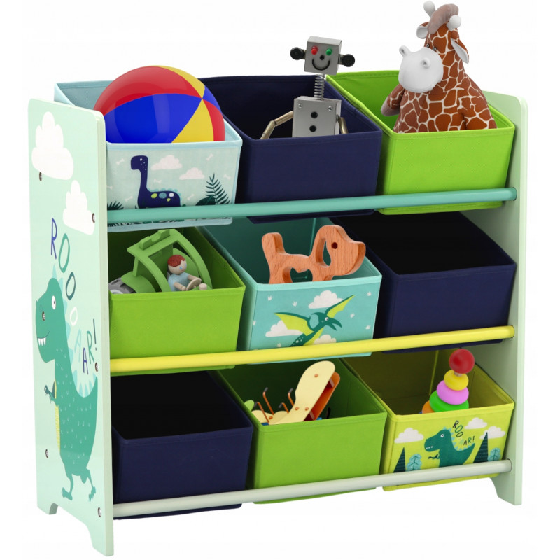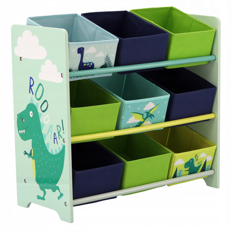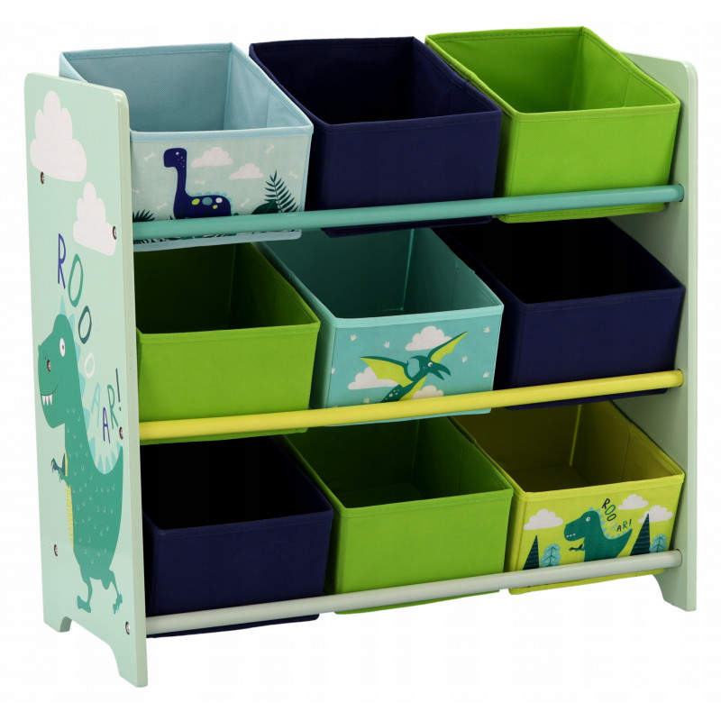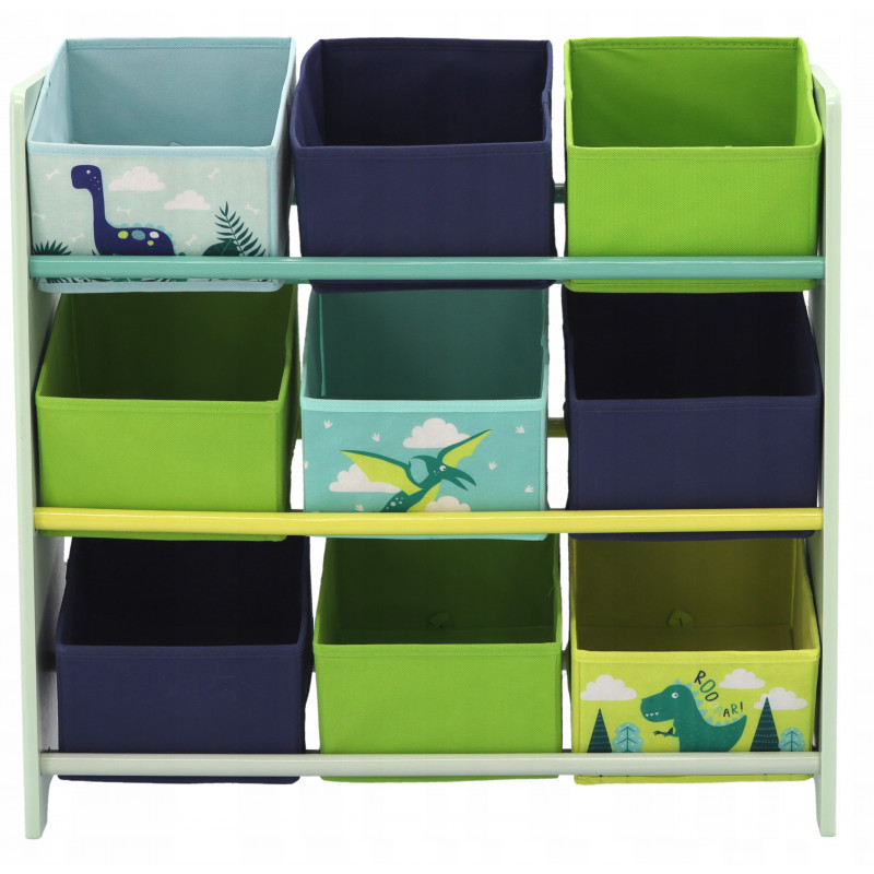 Organizator jucarii, pentru copii, verde/albastru Organizatorul pentru jucarii, este un element esential in camera copilului. Pe langa atributiunile practice pe care le are, acesta il ajuta pe copil sa isi formeze un stil de viata ordonat si va face ca strangerea jucariilor sa fie o sarcina mult mai placuta. Datorita celor 9 compartimente de depozitare, copilul dumneavoastra isi va putea alege jucariile intr-un mod mult mai ordonat.Structura de lemn, este una stabila si sigura, iar compartimentele confectionate din material textil, colorat, il fac obiectul de mobilier ideal pentru camera oricarui copil.