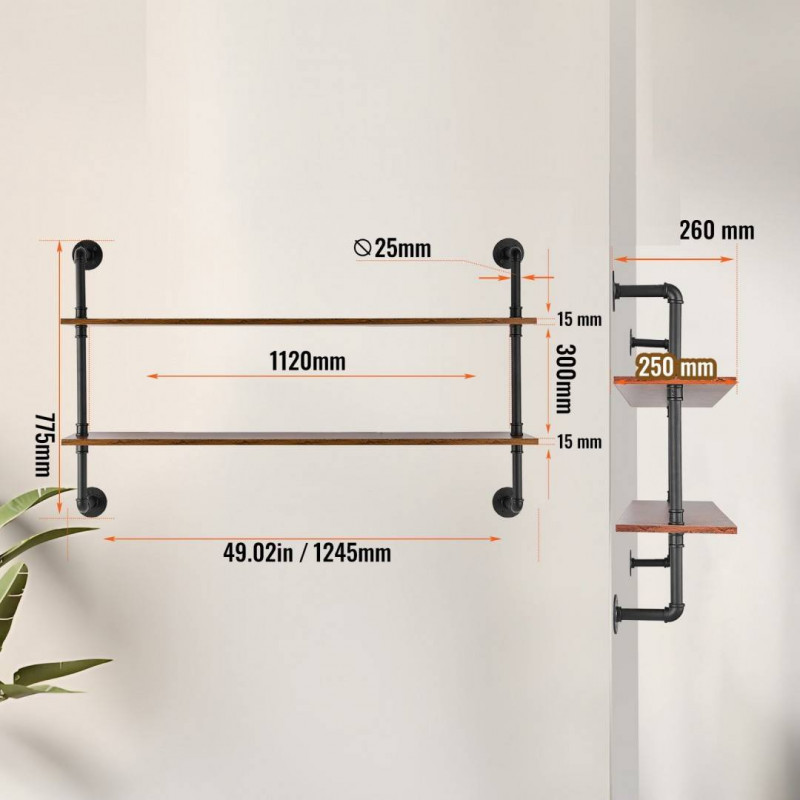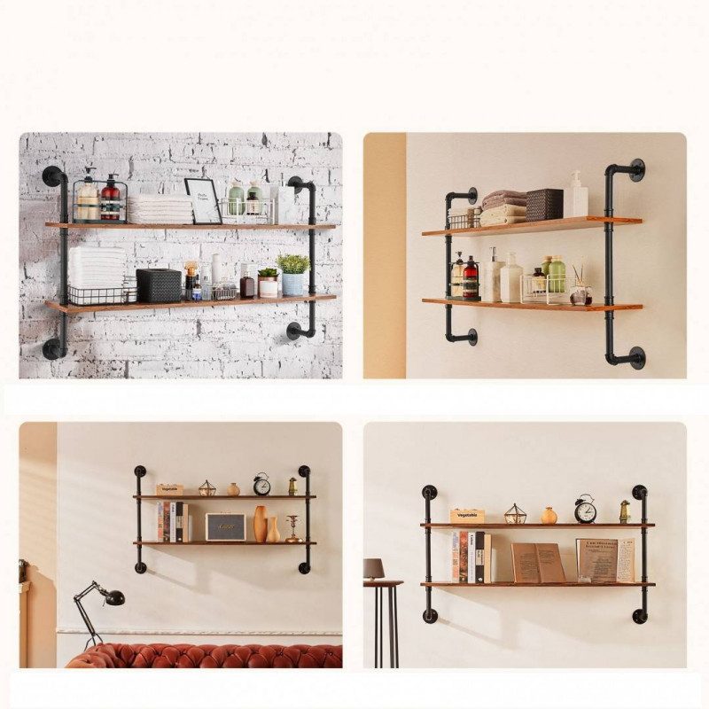 teava metalica robusta si scanduri de lemn ingrosate, fiecare raft poate