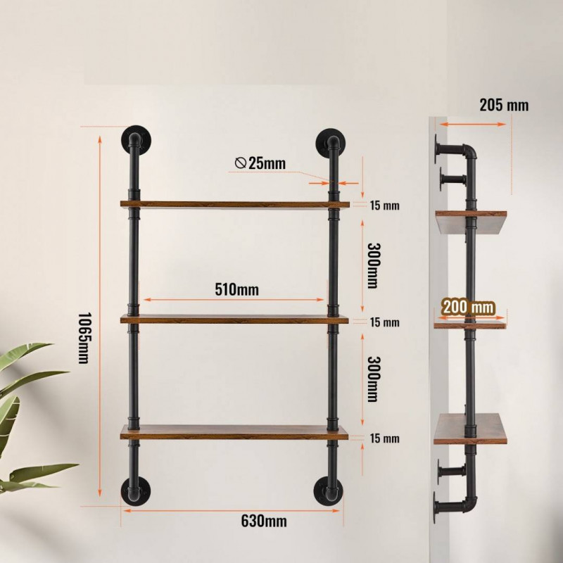 Raft metalic cu 3 x polite incluse din lemn, Vivatechnix