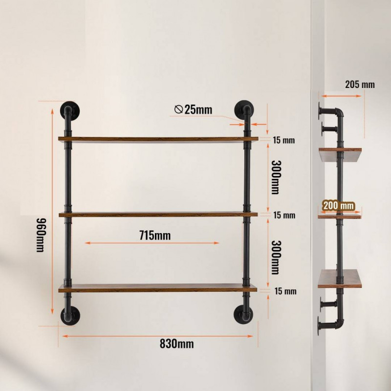 Raft metalic cu 3 x polite incluse din lemn, Vivatechnix