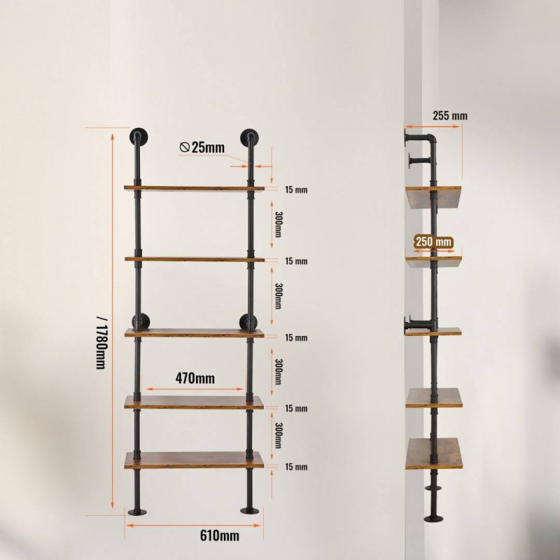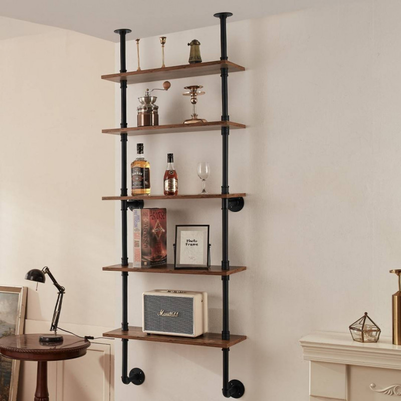 Raft metalic cu 5 x polite incluse din lemn, Vivatechnix