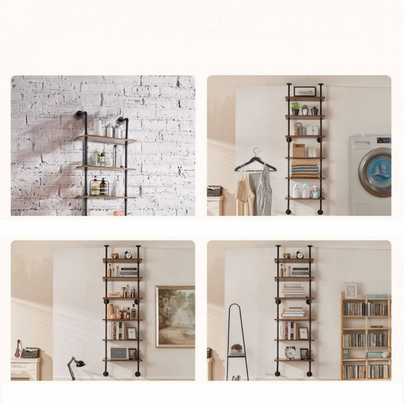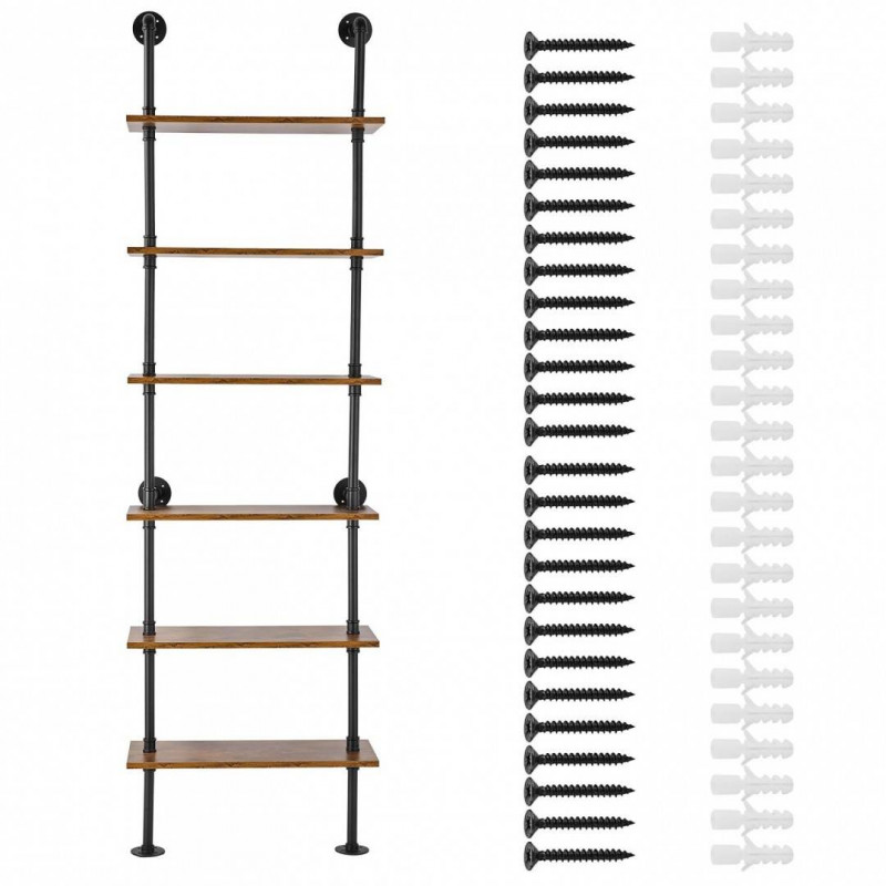 Raft metalic cu 6 x polite incluse din lemn, Vivatechnix