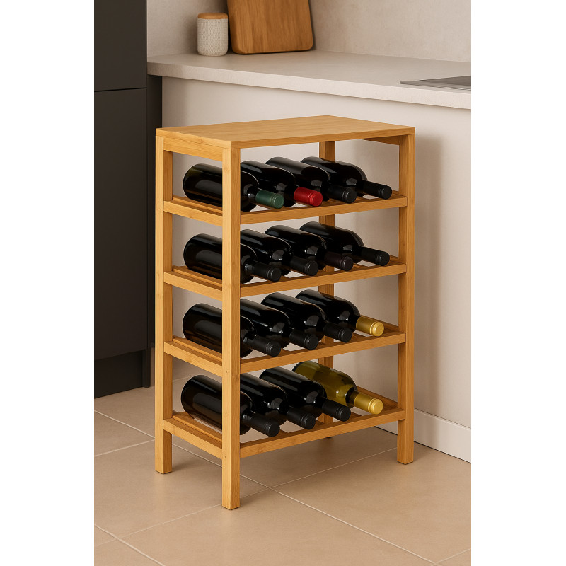 Scurta descriere Fabricat din bambus natural, suportul de sticle Linha este solutia ideala pentru depozitarea a pana la 12 sticle de vin sau apa. Cu un design compact si elegant, este perfect pentru bucatarie, dining sau zona de bar.