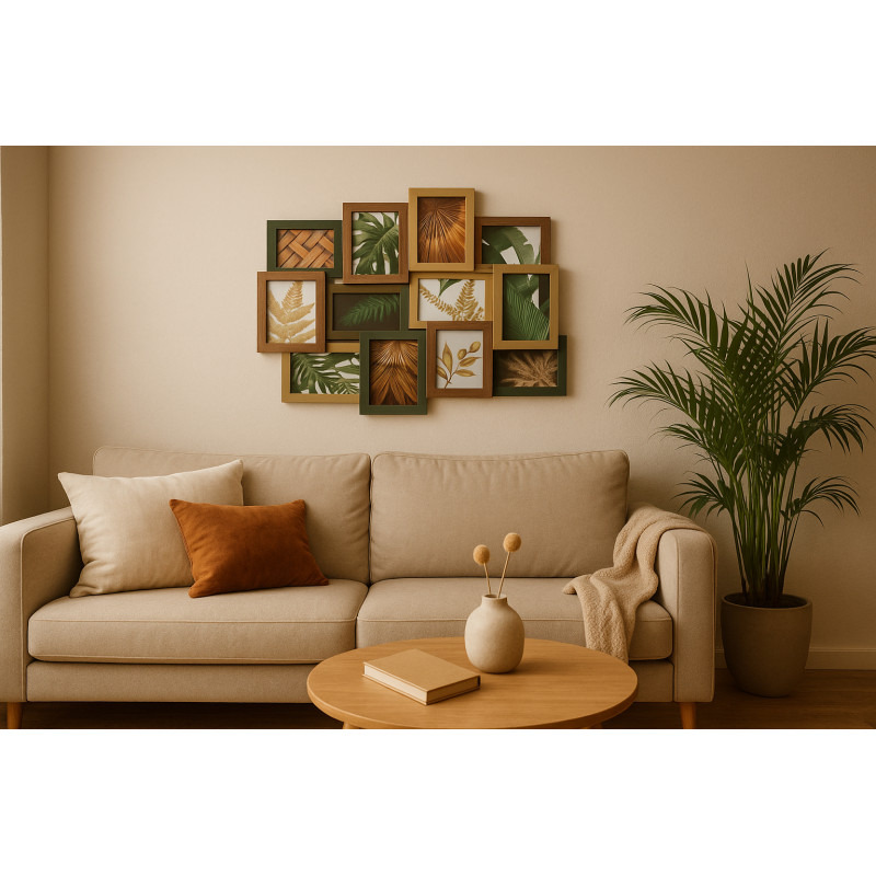 Scurta descriere Rama colaj foto „Julia” este solutia ideala pentru a expune 12 dintre amintirile tale preferate. Realizata din MDF si sticla, are un design eclectic, in tonuri variate de lemn, si poate fi montata atat pe verticala, cat si pe orizontala. Este usoara, practica si se adapteaza oricarui stil de decor.