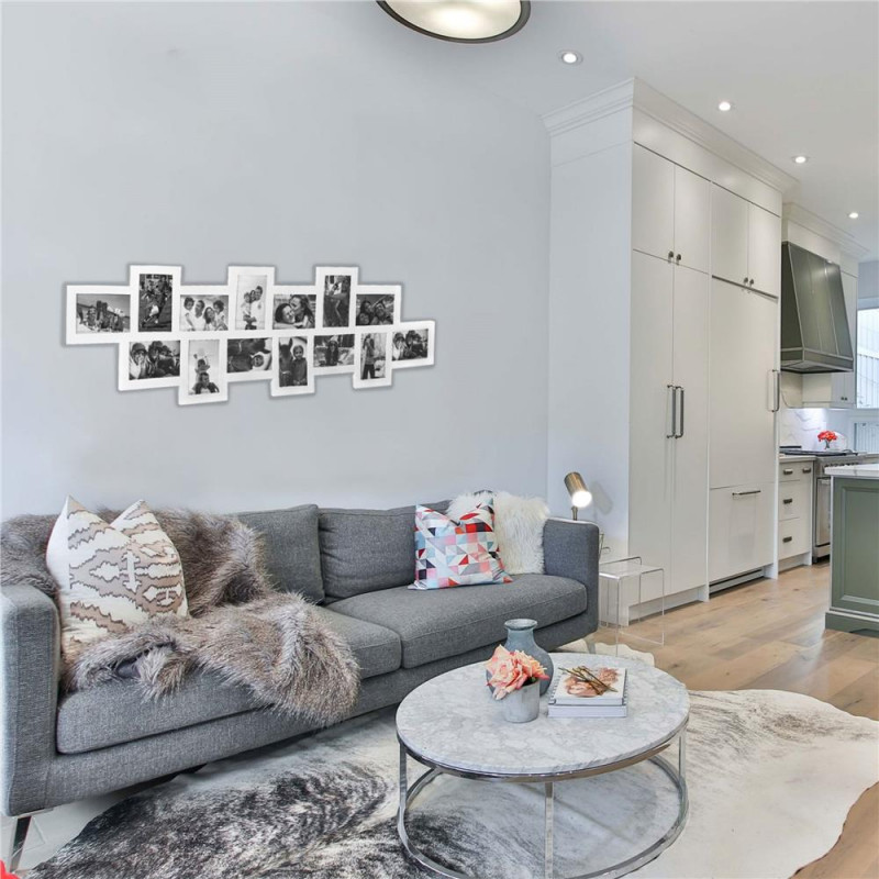 Montaj: orizontal si vertical Aceasta rama foto se va completa perfect cu interiorul dumneavoastra. Rama multipla va putea gazdui pana la 14 fotografii de familie, vederi frumoase, citate motivationale preferate si grafica minimalista. Rama foto are un aspect extrem de placut din punct de vedere estetic, iar dupa ce veti plasa in ea fotografiile sau grafica preferata, aceasta va schimba automant designul incaperii. Cadrul multiplu este, de asemenea o idee de cadou excelenta pentru cei dragi. Ramele pot gazdui fotografii cu o dimensiune maxima de 10x15 cm. Are 8 cadre dispuse pe orizontala si 5 cadre pe verticala. Acest lucru va permite sa folositi fotografiile dvs. preferate. Fotografiile sunt aranjate in spatele unui plexiglas securizat care le mentine in pozitie.