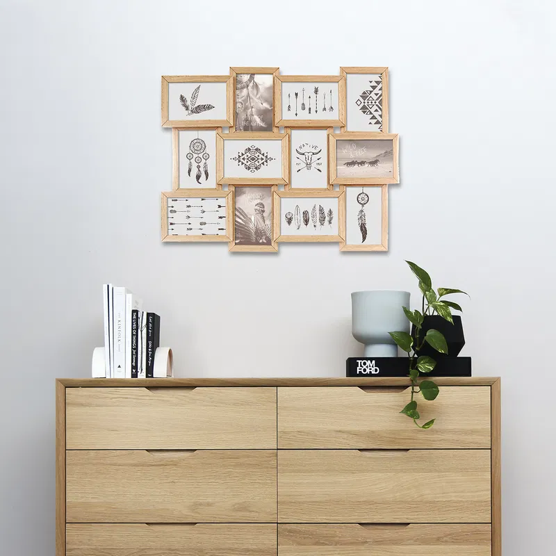 Scurta descriere Rama foto multipla Mia permite expunerea a 12 fotografii in format 10x15 cm, creand un colaj decorativ echilibrat. Designul in nuanta natur se integreaza usor in interioare moderne, scandinave sau naturale. Ideala pentru living, hol sau dormitor.