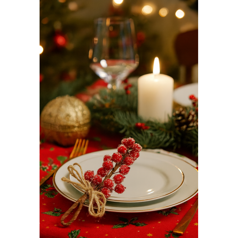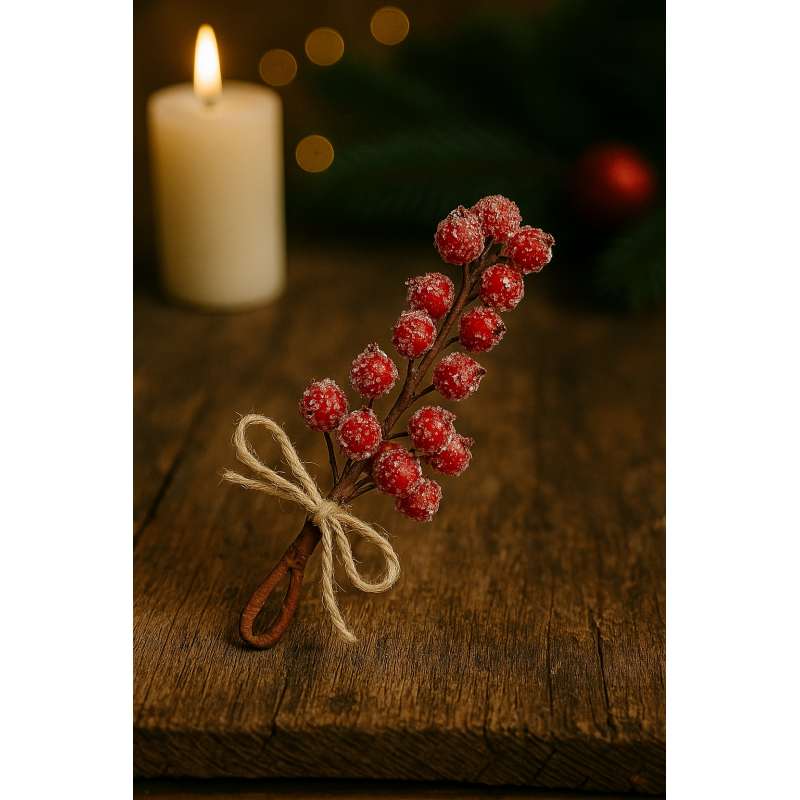 Scurta descriere: Ramura decorativa cu jarabina artificiala si snur din iuta, ideala pentru ornamente festive, aranjamente de iarna sau decoratiuni de masa. Realizata din plastic de calitate si completata cu detalii realiste, imita perfect o ramura naturala. Culoarea calda, combinatie de maro si rosu, adauga o nota rustica si eleganta decorului tau.