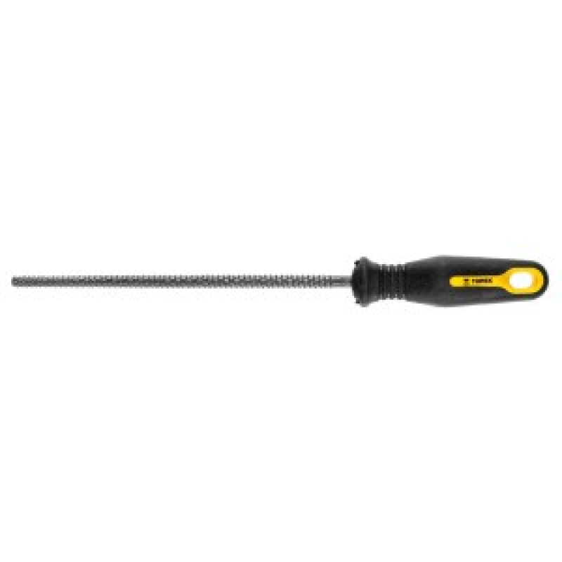 Pila pentru lemn TOPEX (ref. 06A833) 200 mm lungime, sectiune transversala rotunda. Conceput pentru slefuirea lemnului. Fabricat din otel T12 de inalta calitate. Manerul ergonomic acoperit cu material antiderapant ofera confort si siguranta in timpul lucrului. Marca TOPEX se adreseaza pasionatilor de bricolaj.