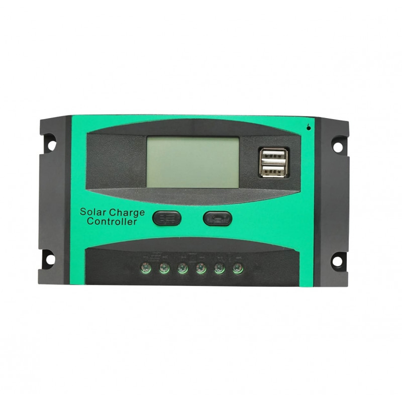 Controler pentru incarcarea bateriilor sau pentru utilizarea directa a energiei fotovoltaice produsa de modulele solare. Are incorporat doua iesiri USB 5V/2A, care poat fi folosite cu succes pentru incarcarea de telefoane mobile, tablete, etc.