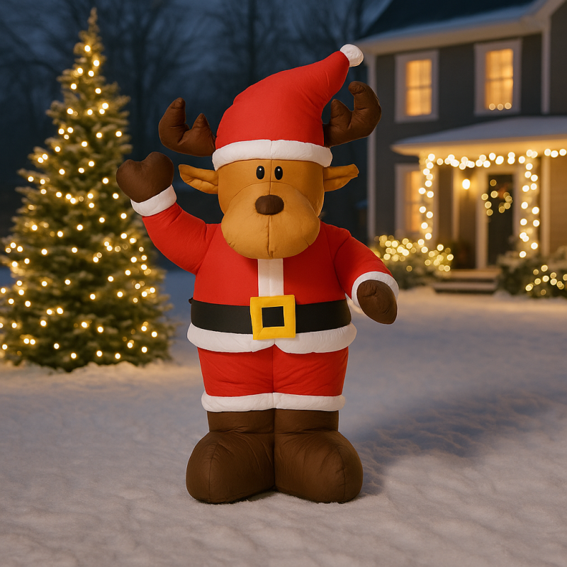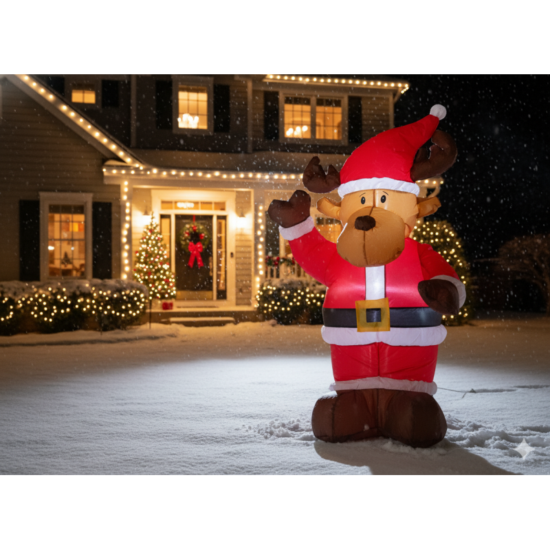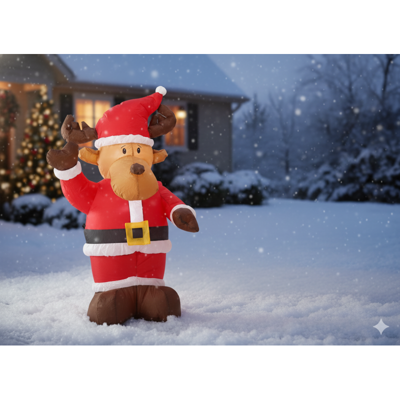 Scurta descriere Renul gonflabil LED de 135 cm aduce spiritul sarbatorilor in orice spatiu. Se umfla rapid, lumineaza frumos si este potrivit atat pentru interior, cat si pentru exterior. Reprezinta o decoratiune ideala pentru curti, gradini, terase sau zone comerciale.