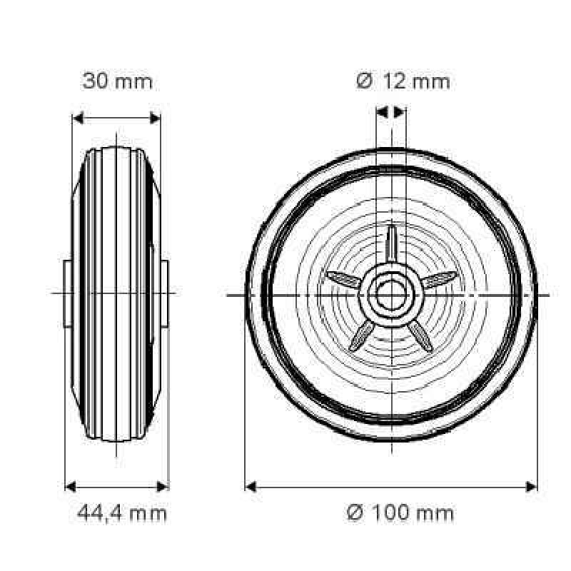 Jantă din tabla din otel, Suprafaţă de rulare: cauciuc plin negru , rulment role cu ace.