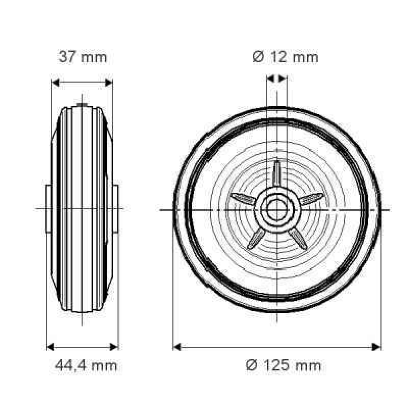 Jantă din tabla din otel, Suprafaţă de rulare: cauciuc plin negru , rulment role cu ace.